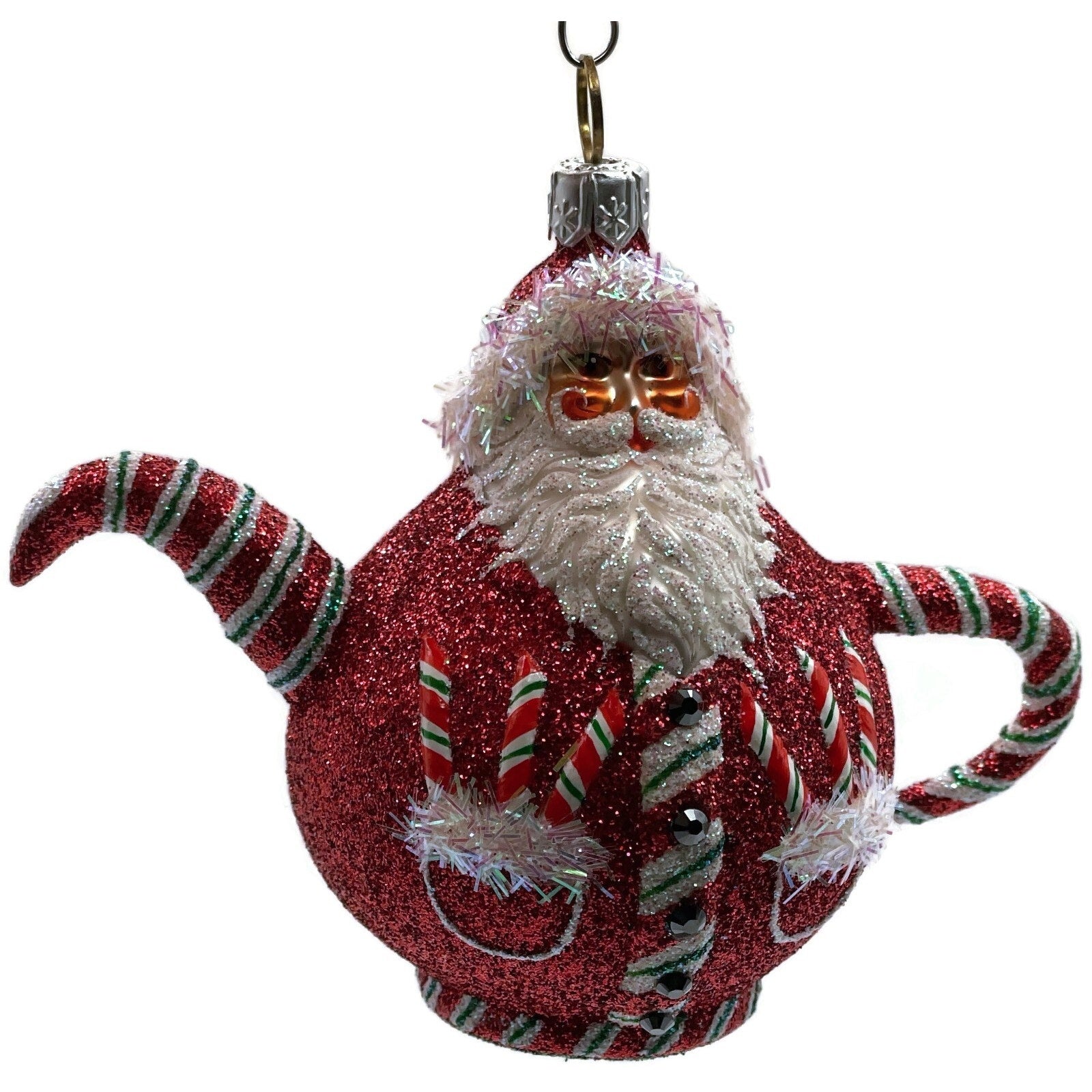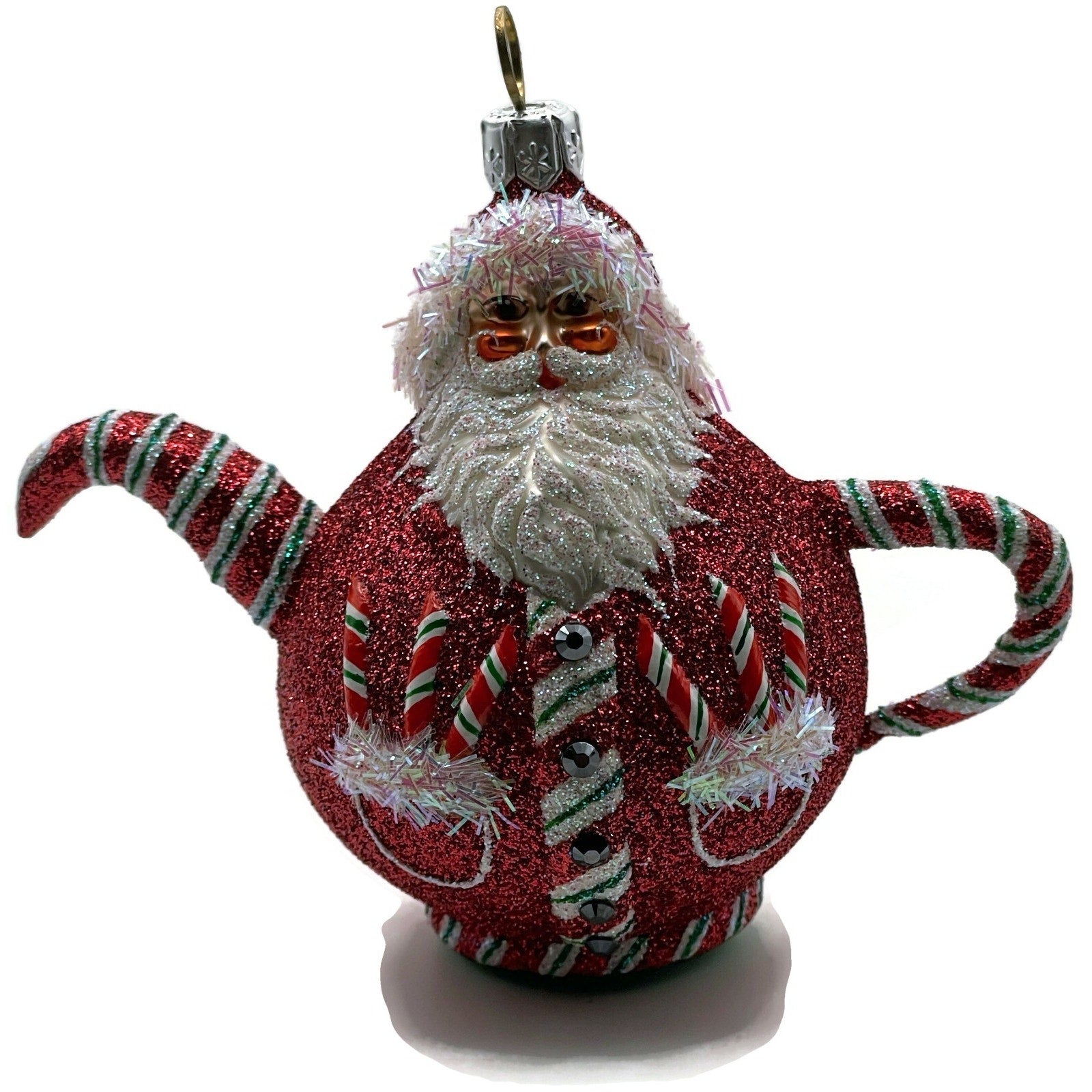 Patricia Breen And Cream Too Santa Claus Tea Pot Peppermint Christmas Ornament