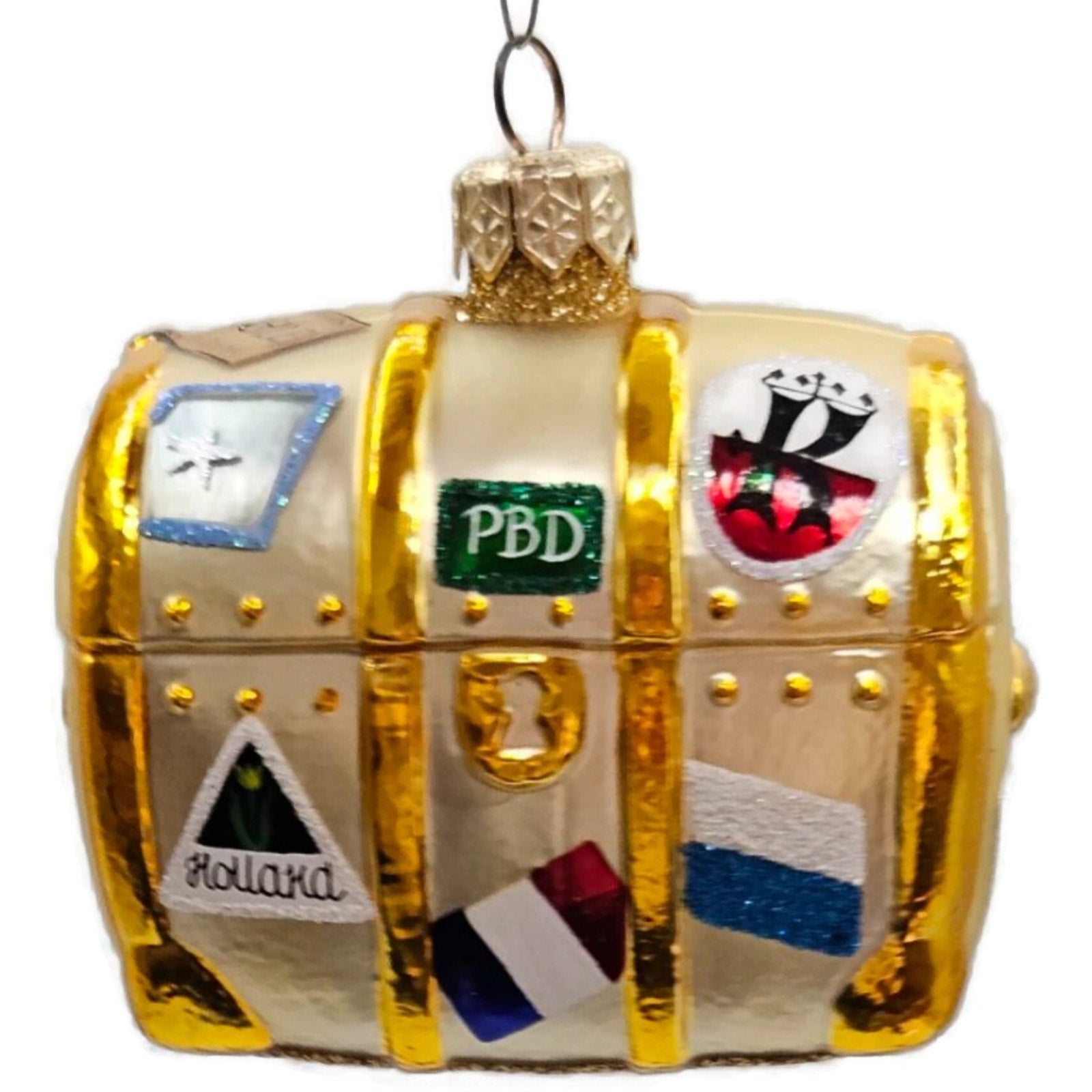 Patricia Breen Ornament Bon Voyage Gold Georgia Green Travel Trunk Christmas Decoration