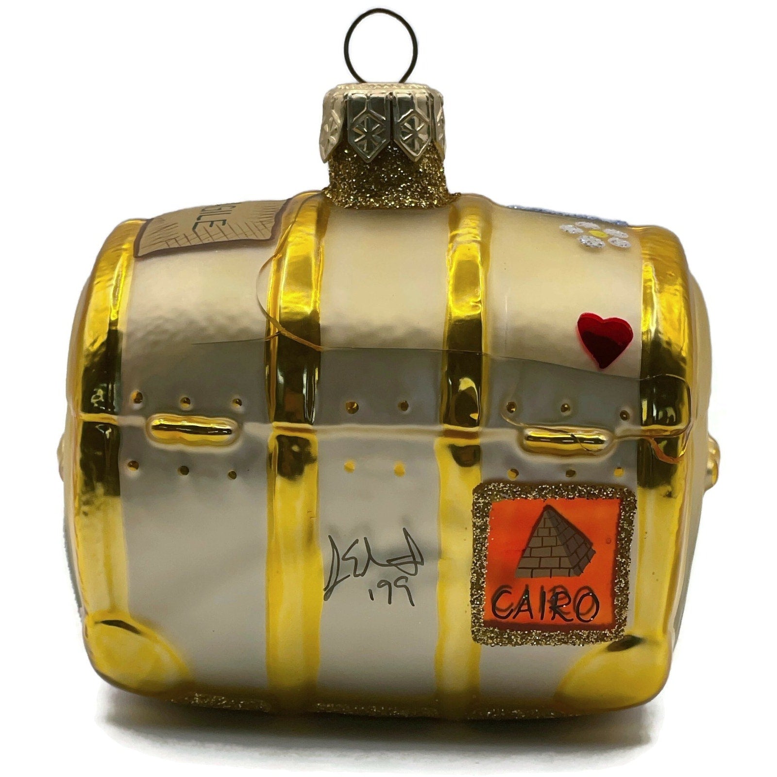 Patricia Breen Bon Voyage Gold Palm Beach Travel Trunk Christmas Tree Ornament