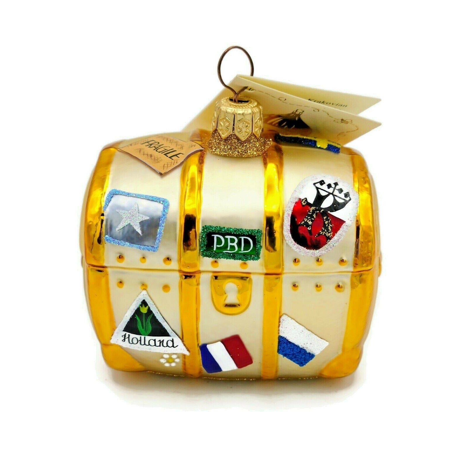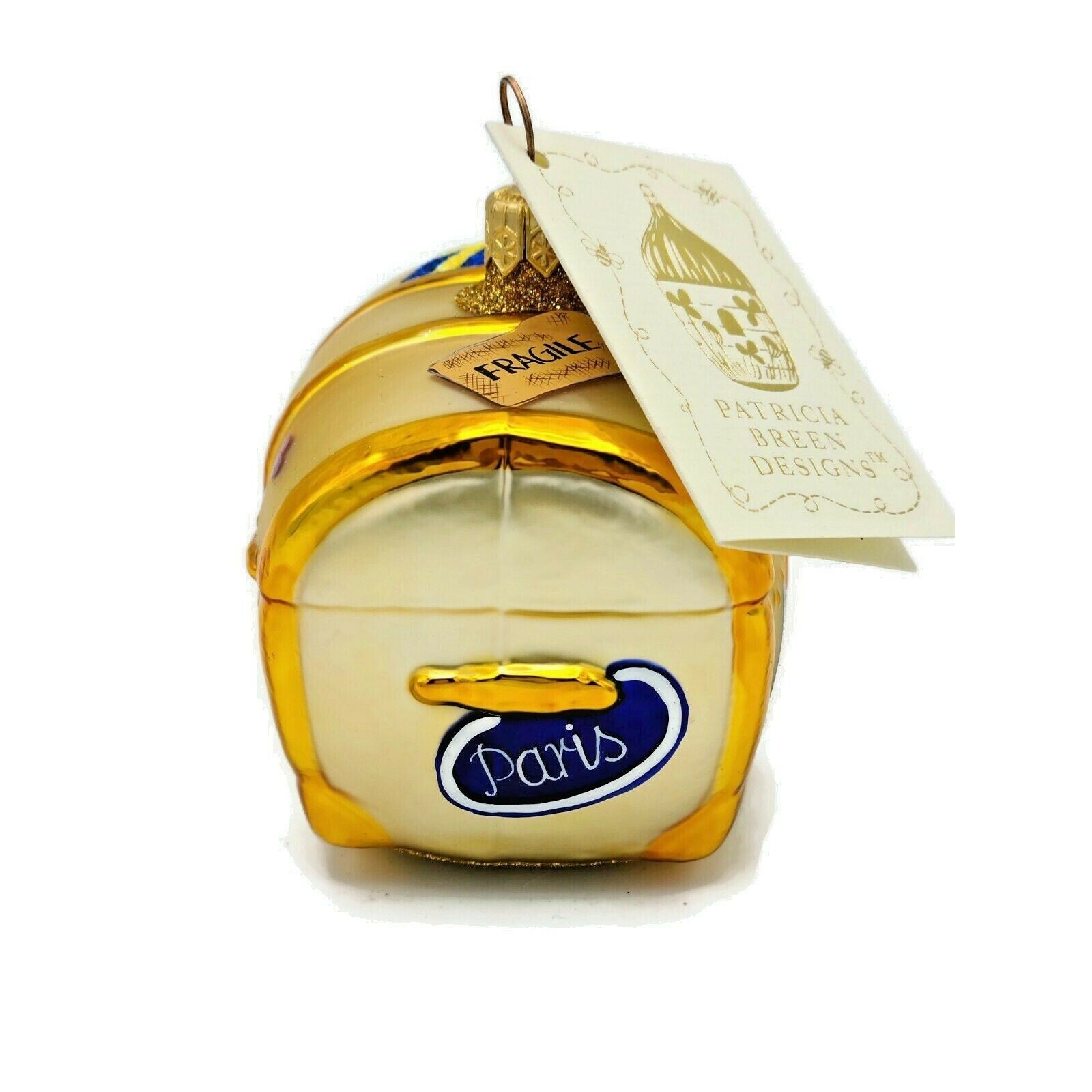 Patricia Breen Bon Voyage Gold Portland in Green Triangle Travel Trunk Christmas Ornament CATZ