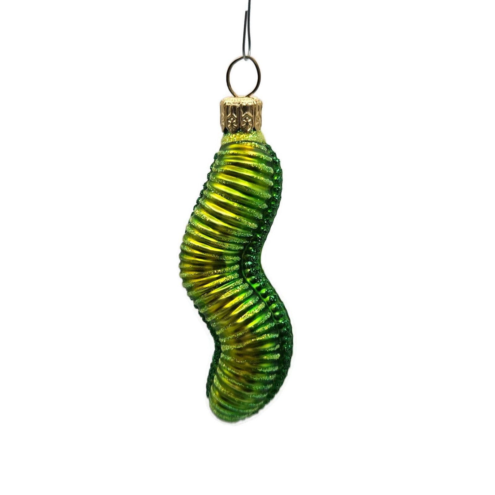 Patricia Breen Bugs Caterpillar Green Glittered Christmas Holiday Tree Ornament