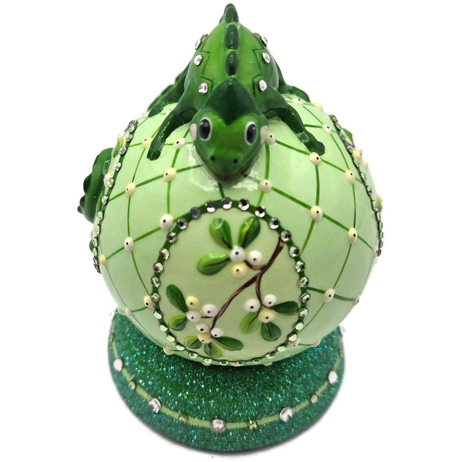 Patricia Breen Ornament Chameleon Cachette Mistletoe Green Floral Christmas Decoration