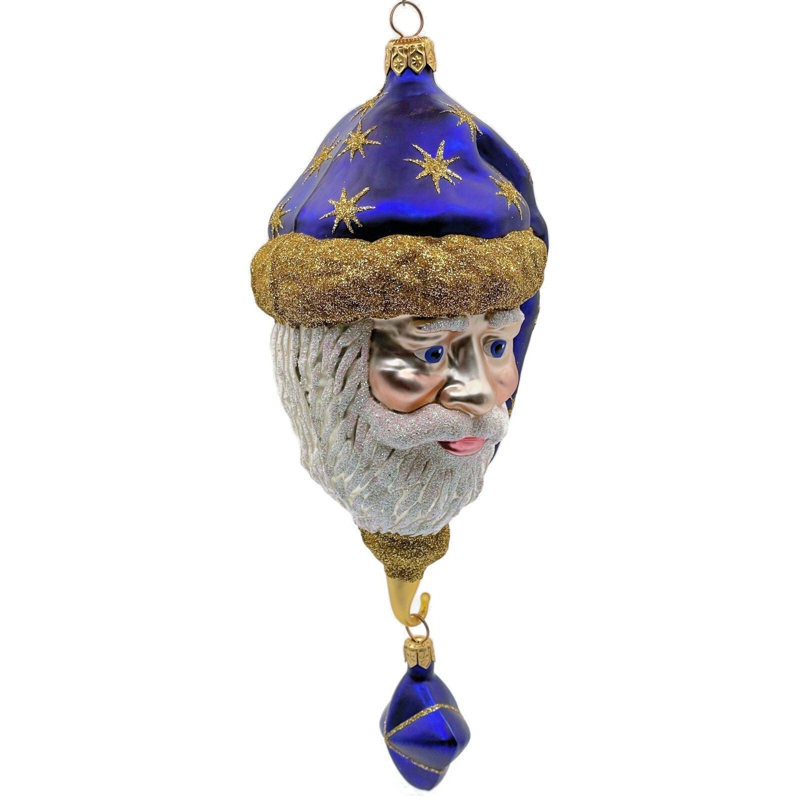 Patricia Breen Goodnight Santa Head Purple Gold Glittered Stars Christmas Tree Ornament
