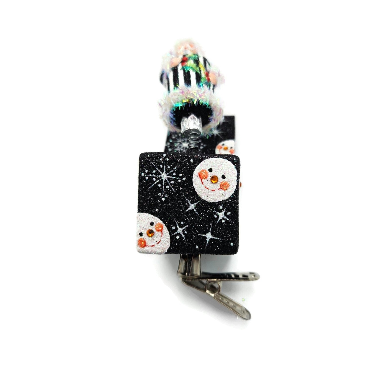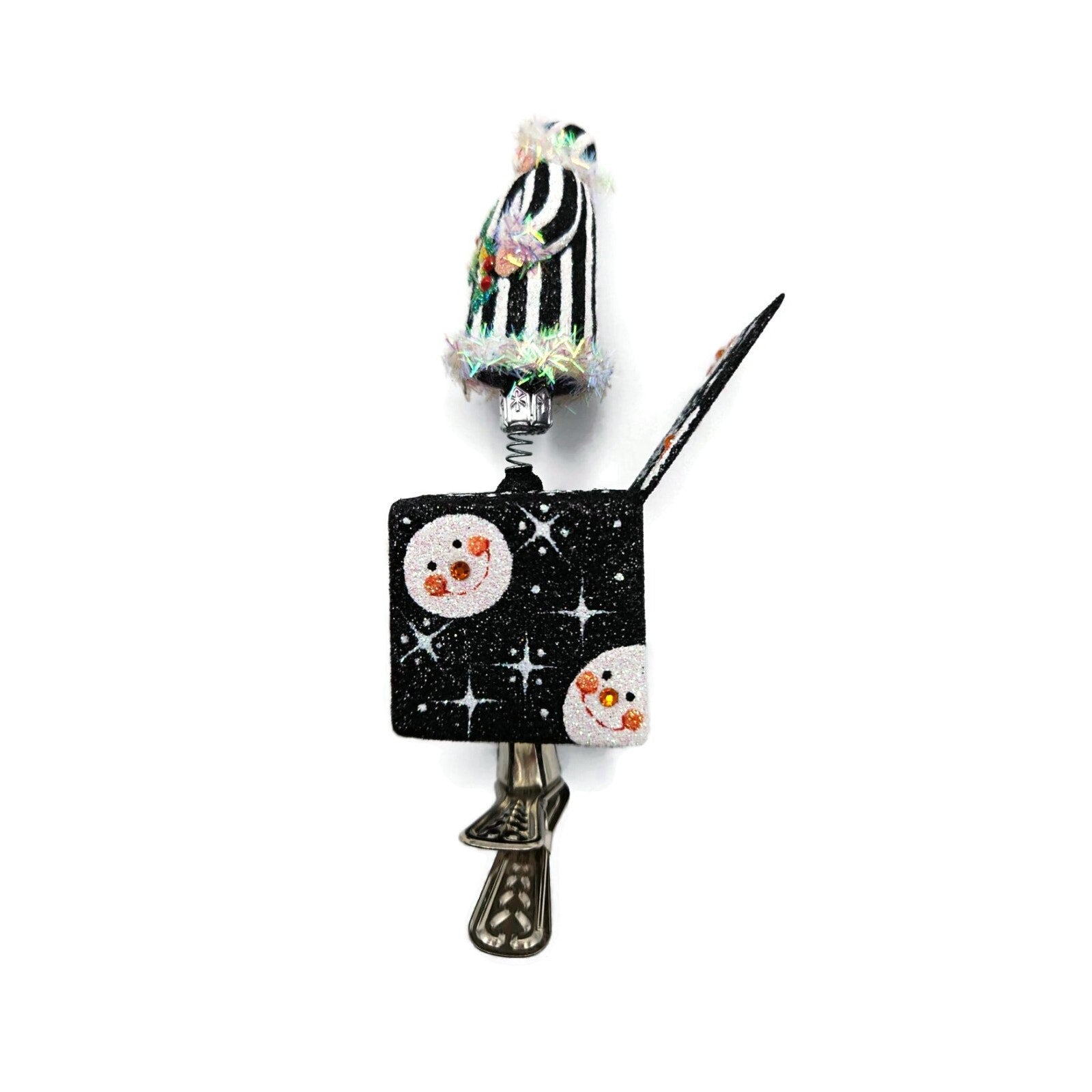 Patricia Breen Jolly Surprise Santa Claus Black Striped Snow Faces Christmas Ornament