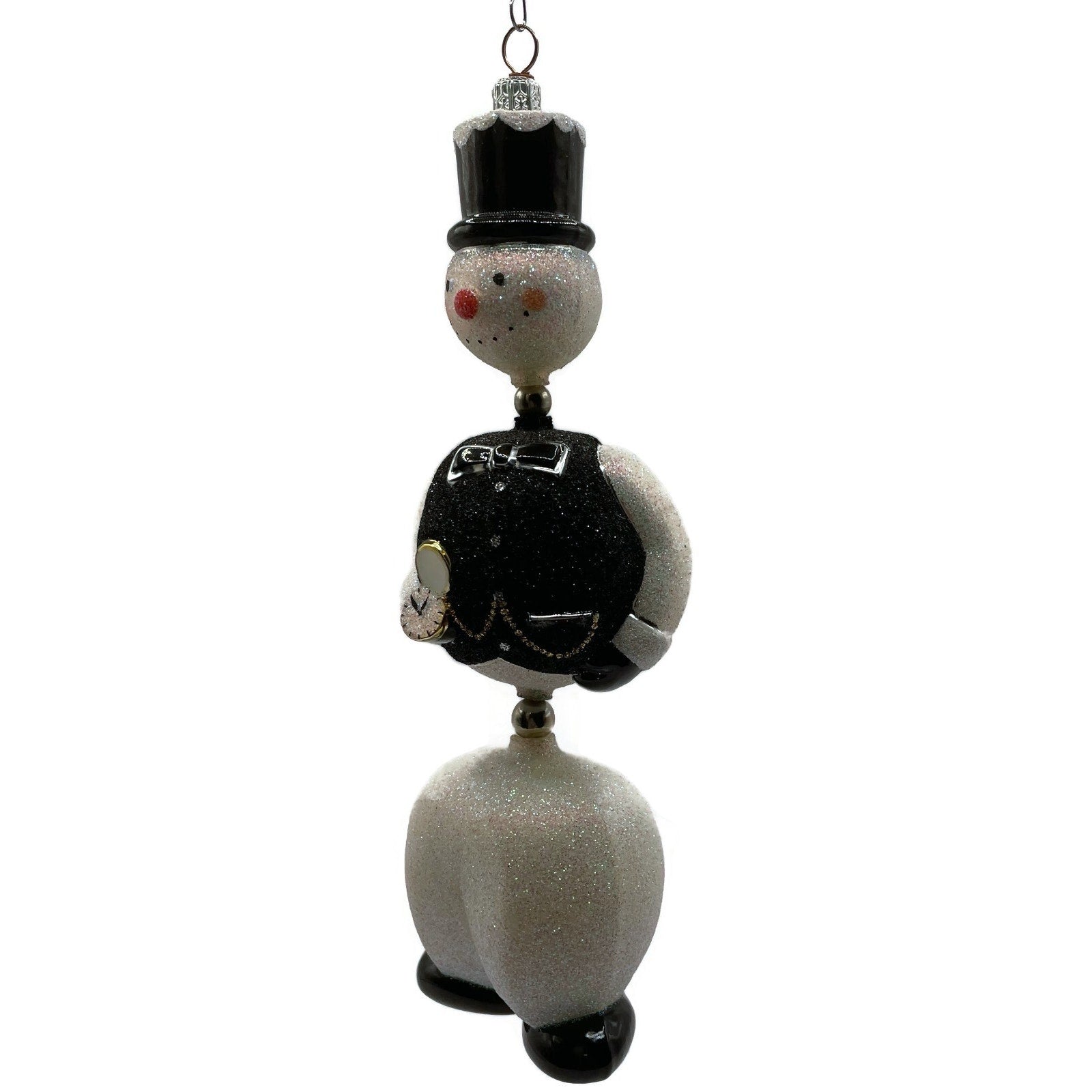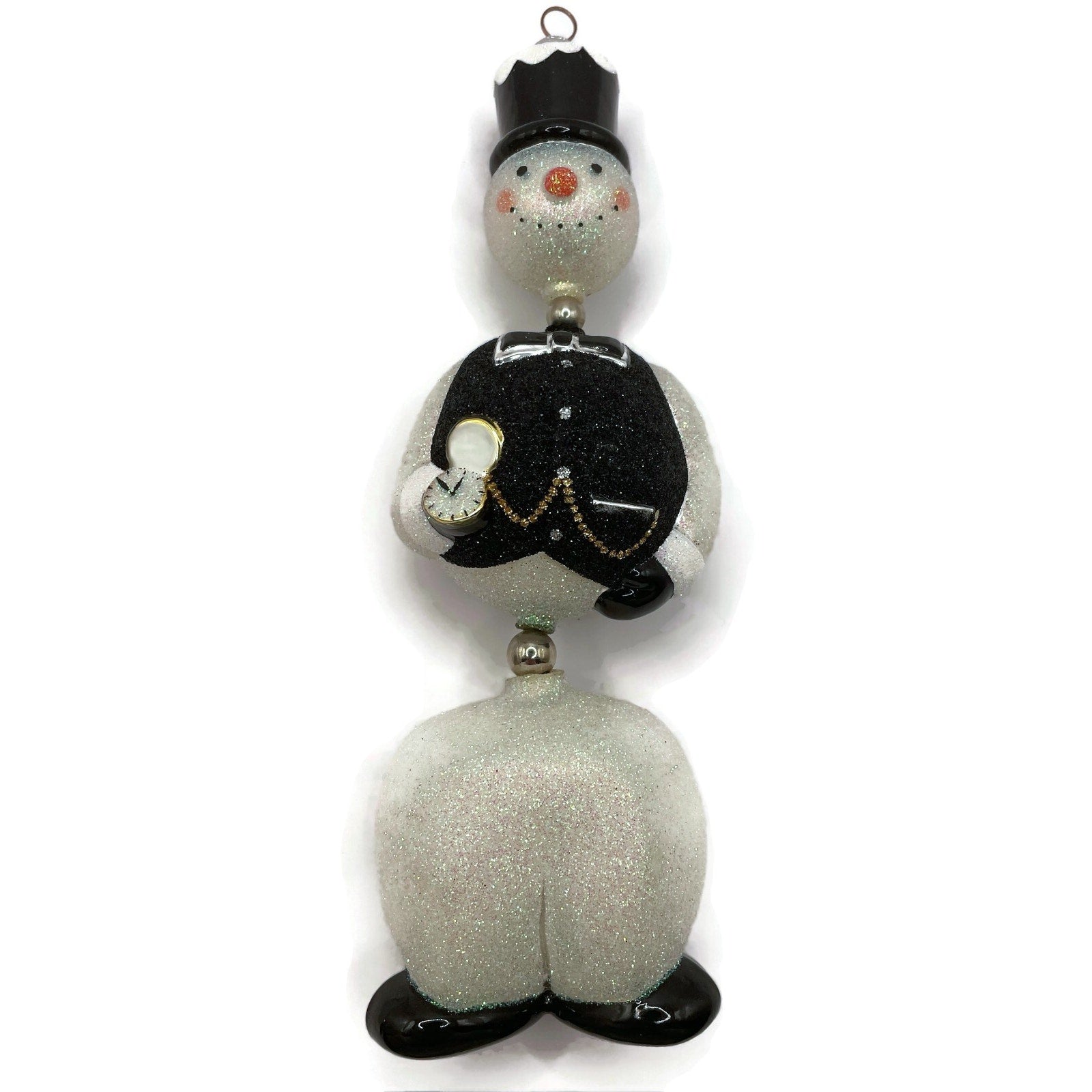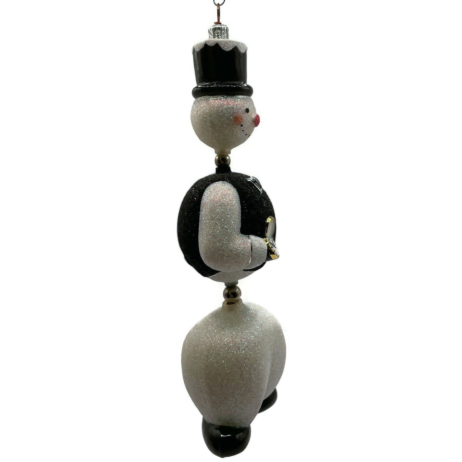 Patricia Breen Kinetic Snowman Black Hat Pearl Christmas Tree Ornament