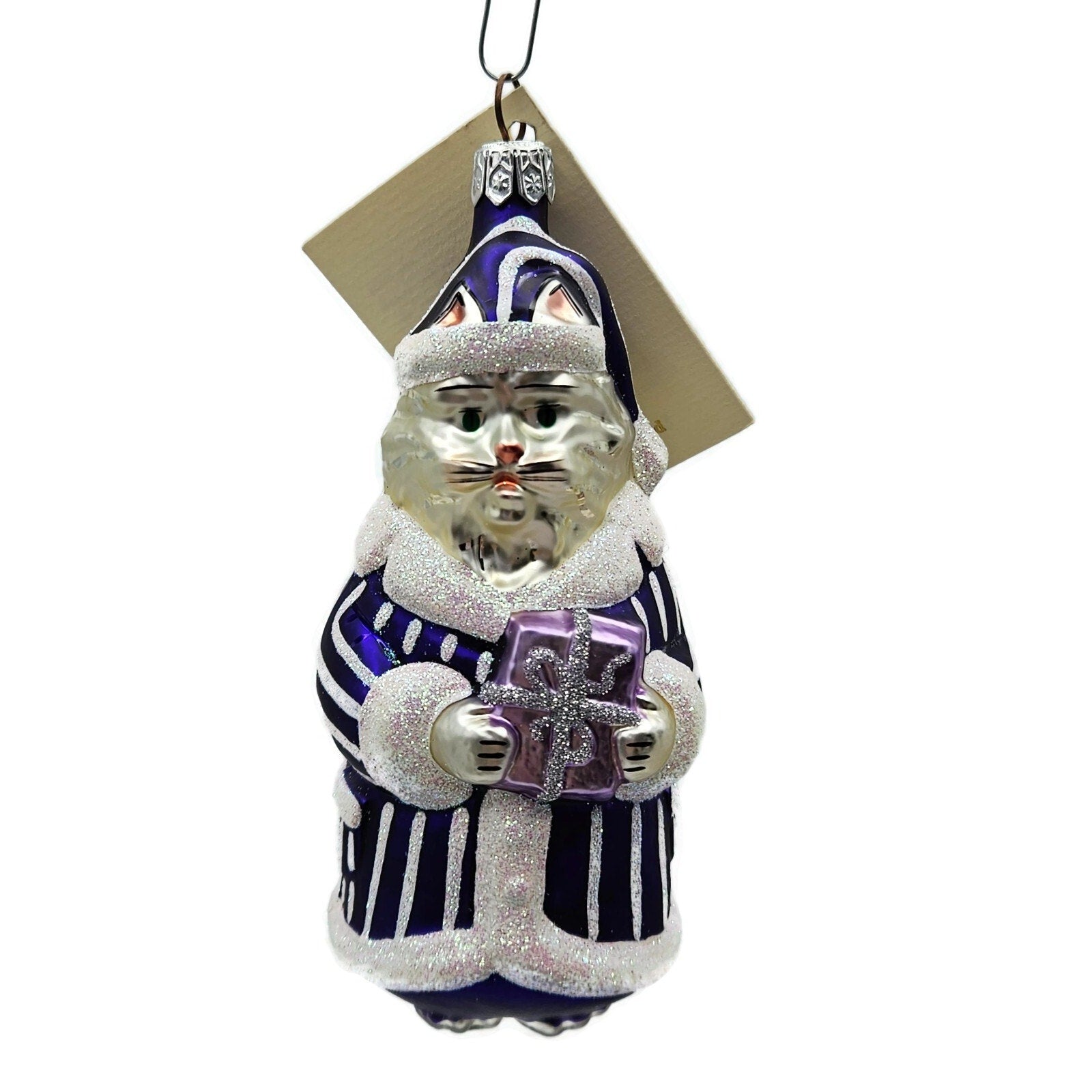 Patricia Breen Kitty Claus Purple Stripes White Christmas Holiday Tree Ornament