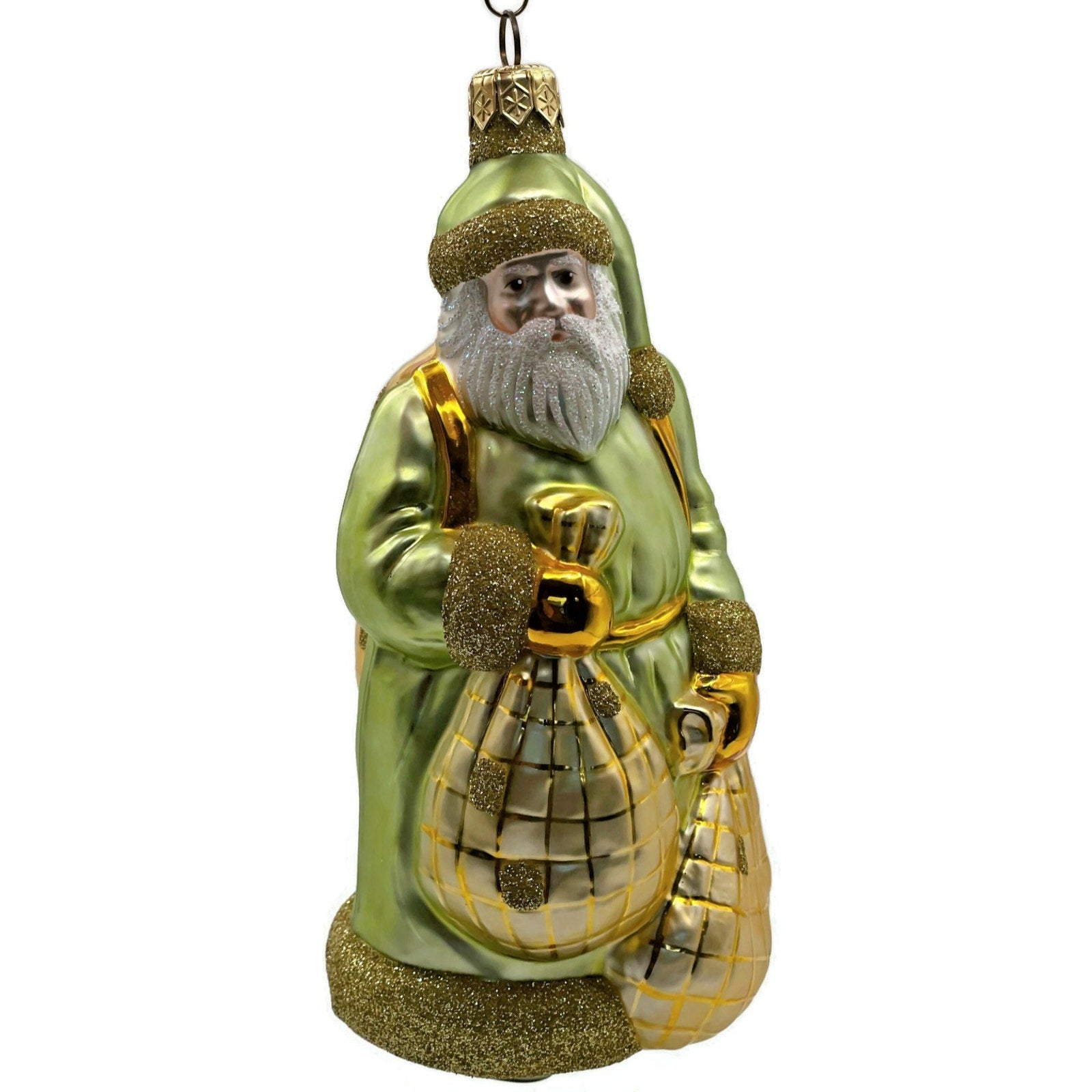 Patricia Breen Ornament Laden With Love Green Gold Santa Claus Christmas Tree Decoration