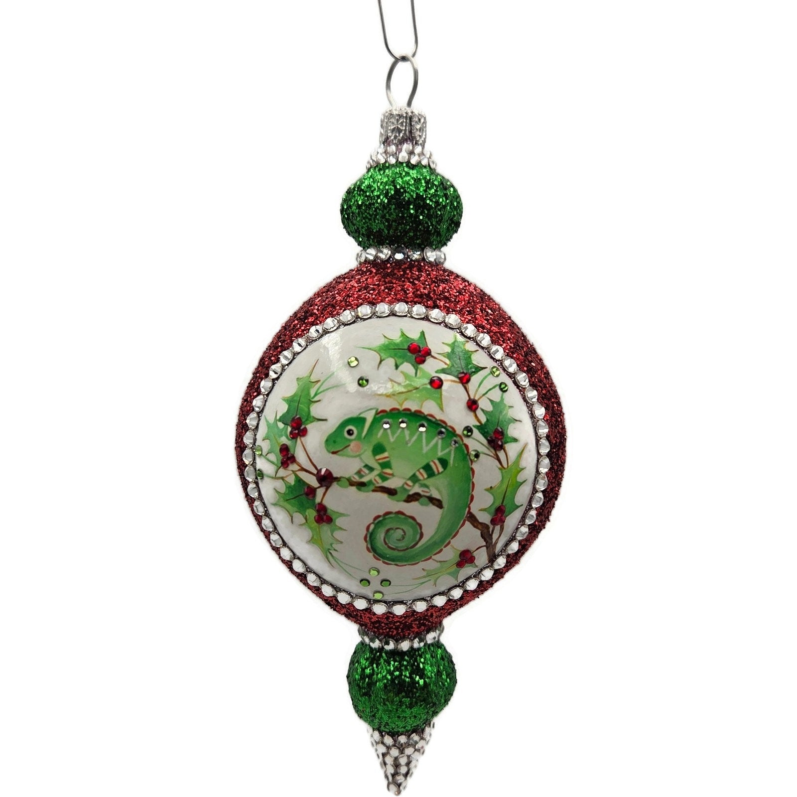 Patricia Breen Le Fleuron Holly Chameleon Red Glittered Christmas Tree Ornament