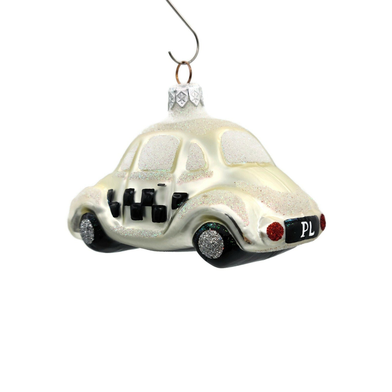 Patricia Breen Little Yellow Taxi Pearl Extra Glitter White and Black Christmas Holiday Ornament