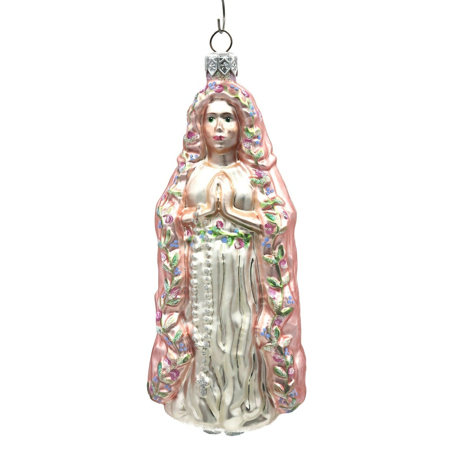 Patricia Breen Madonna of the Flowers Glittered Bottom Floral Religious Christmas Ornament