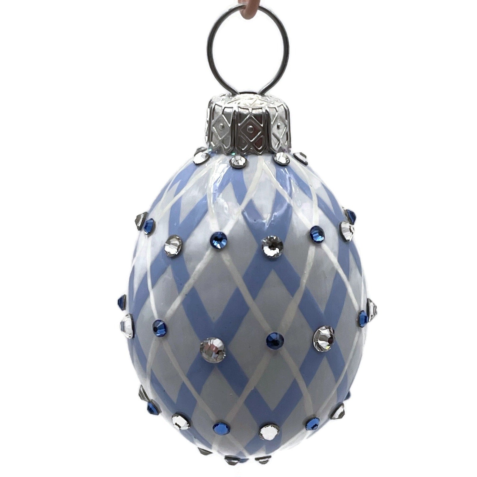 Patricia Breen Miniature Egg Argyle Blue Crystals Easter Christmas Tree Ornament