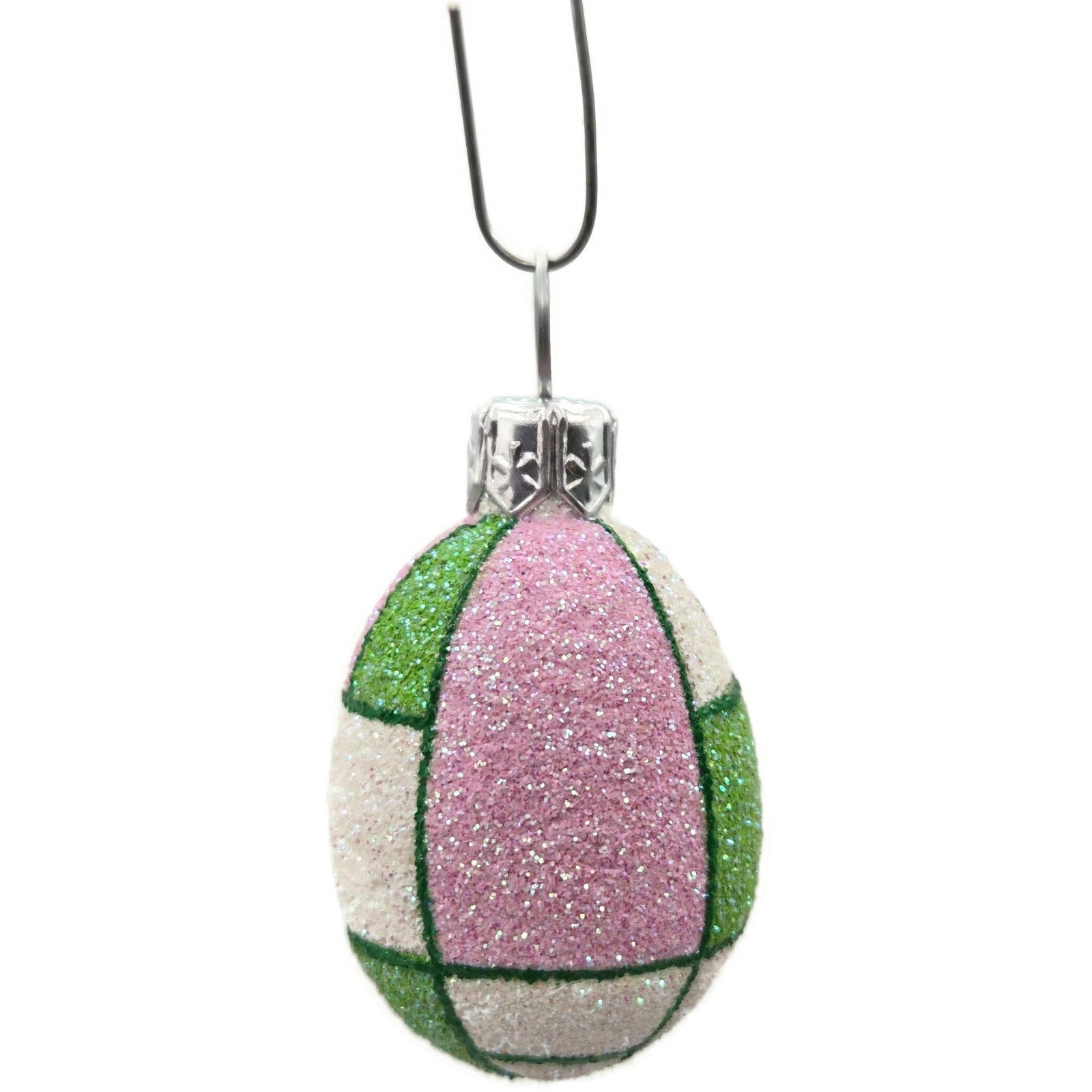Patricia Breen Miniature Egg De Stijl Green Pink White Glitter Easter Ornament