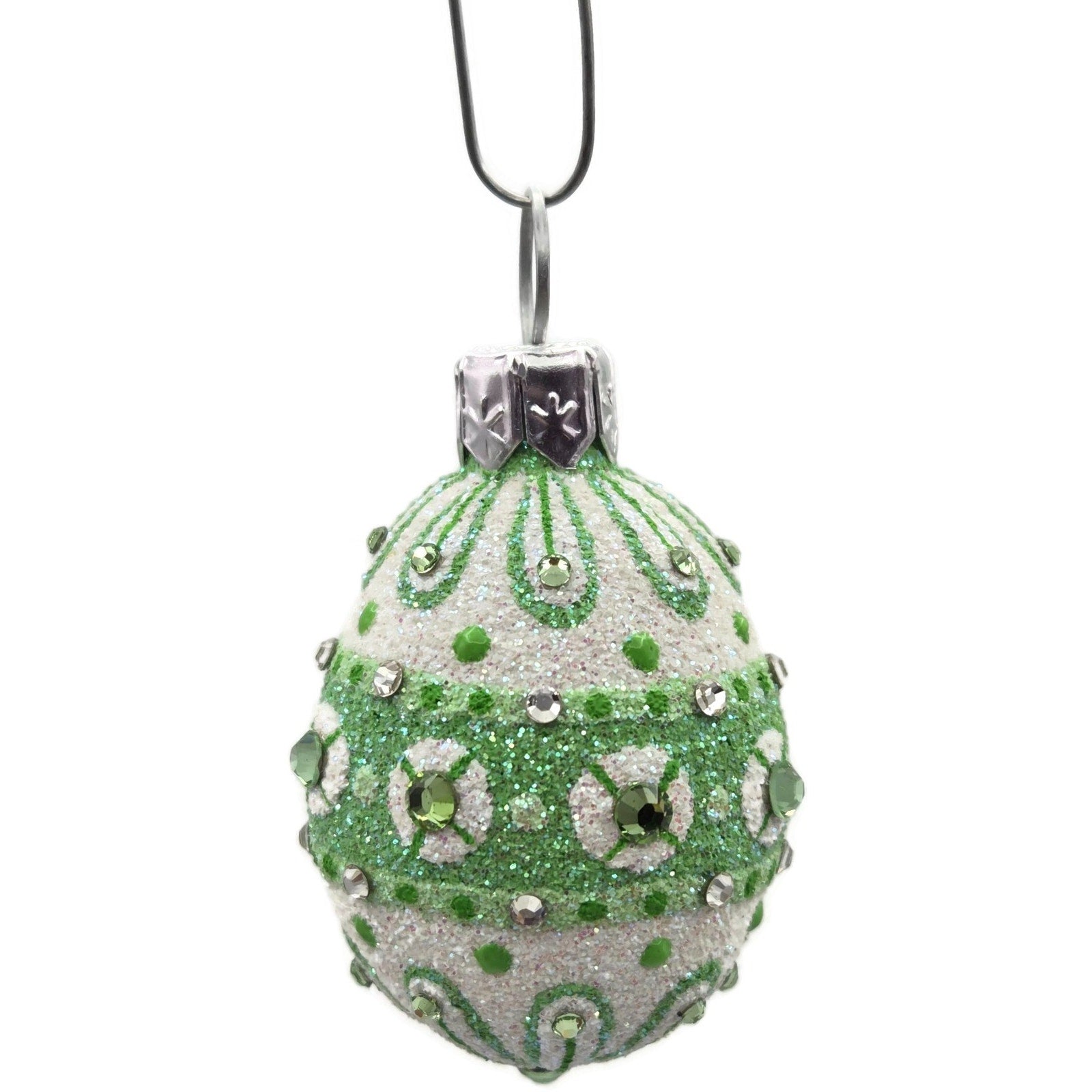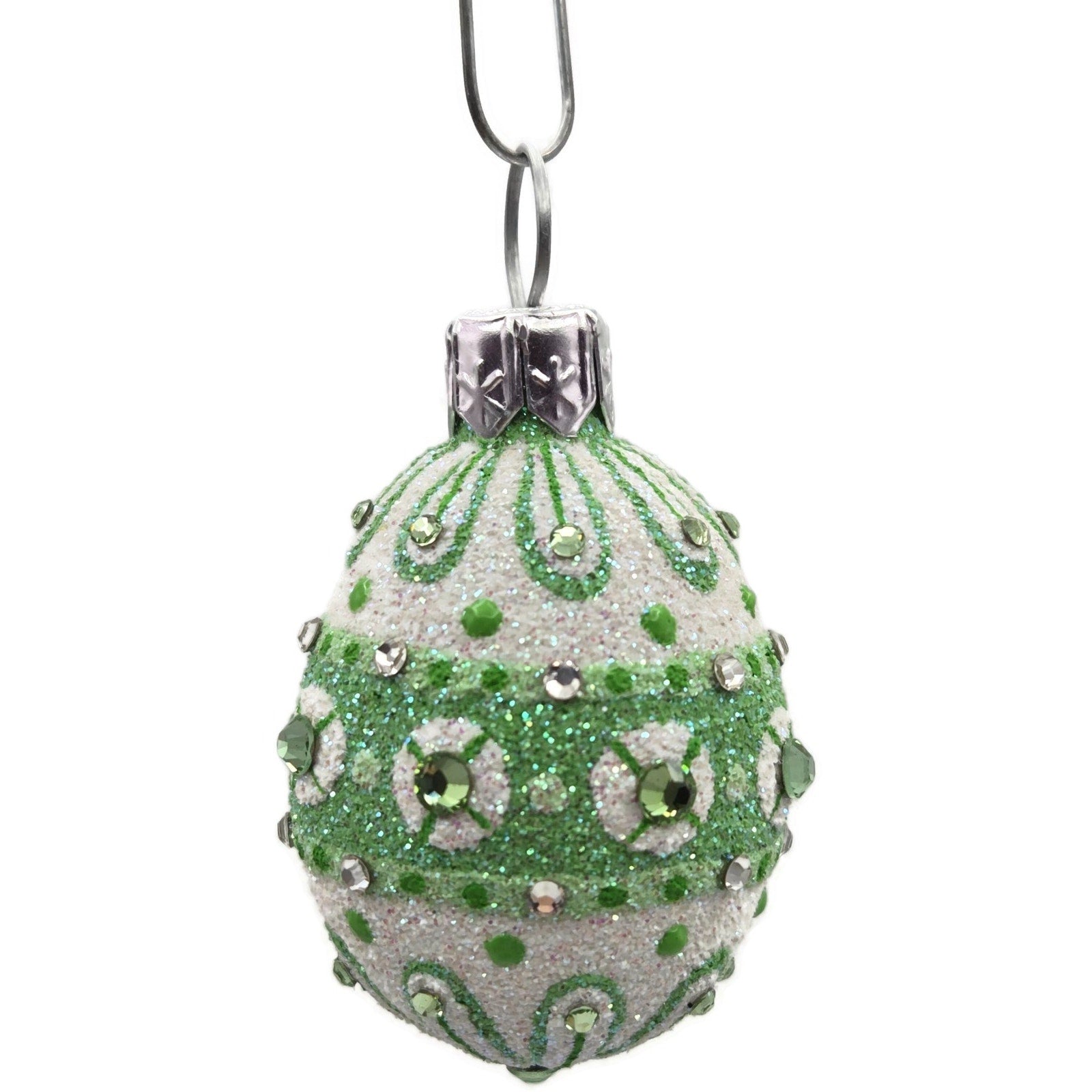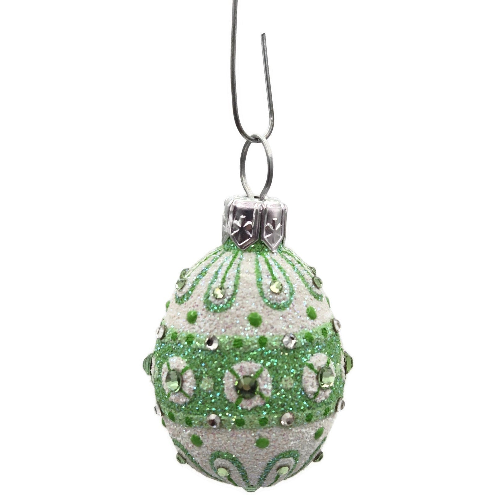 Patricia Breen Miniature Egg Zakopane Green White Glittered Swarovski Crystal Easter Christmas Tree Ornament