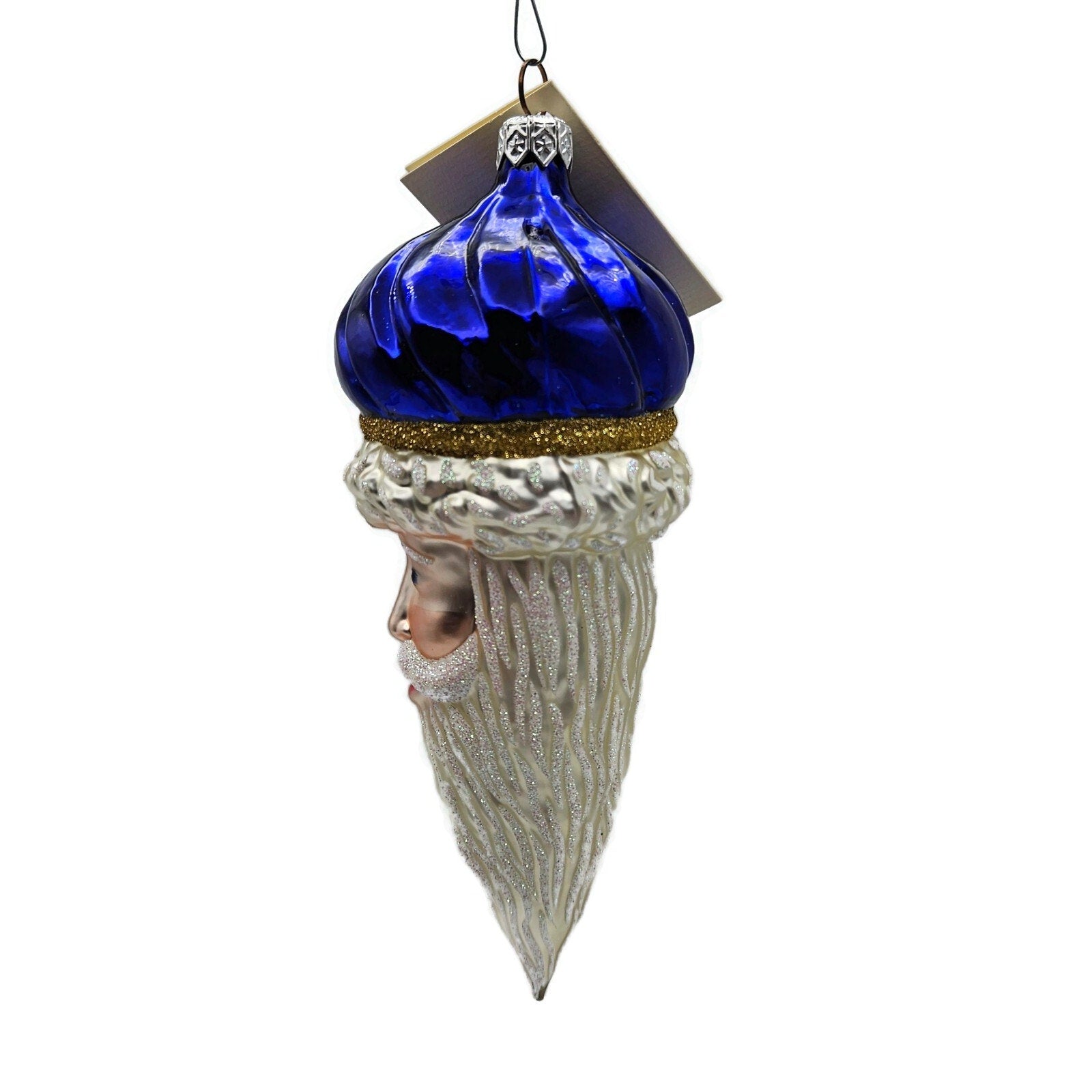 Patricia Breen Minsk Santa Claus Blue Shiny Gold Band Christmas Tree Ornament