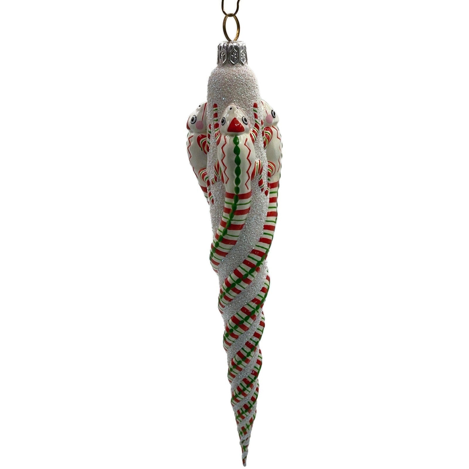 Ornament Patricia Breen Chameleon Icicle Red White Green Stripes Christmas Tree Decoration