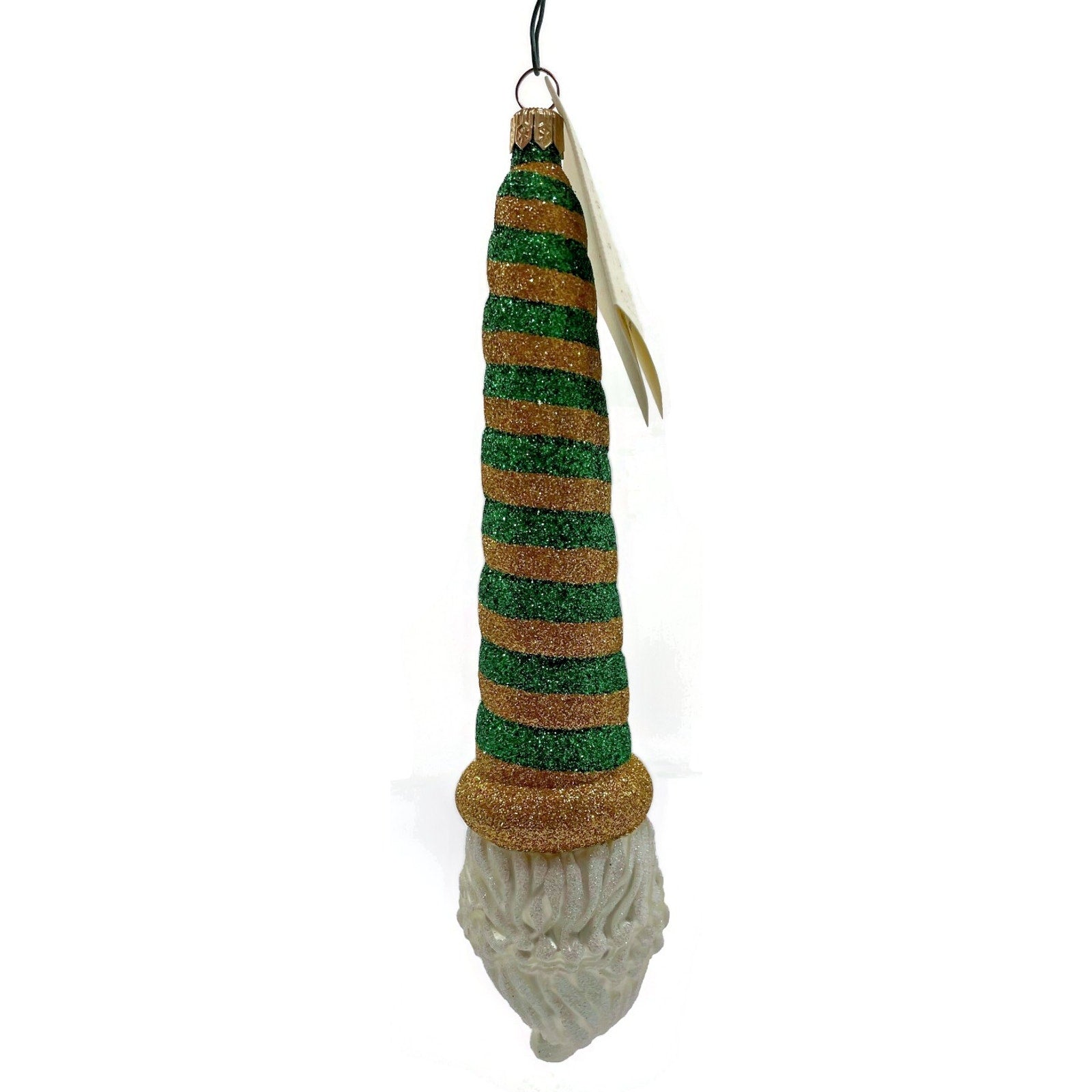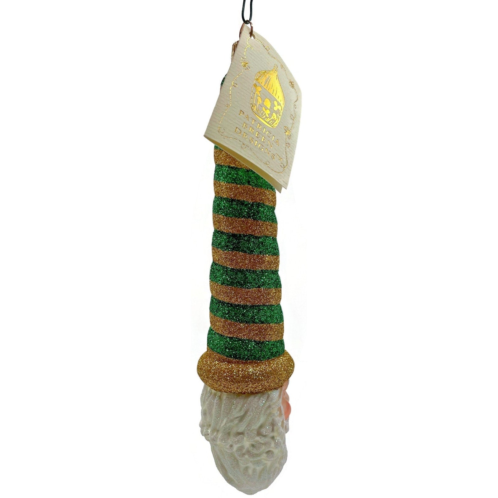 Ornament Patricia Breen Sucre Santa Green Gold Striped Christmas Holiday Tree Glittered Decoration