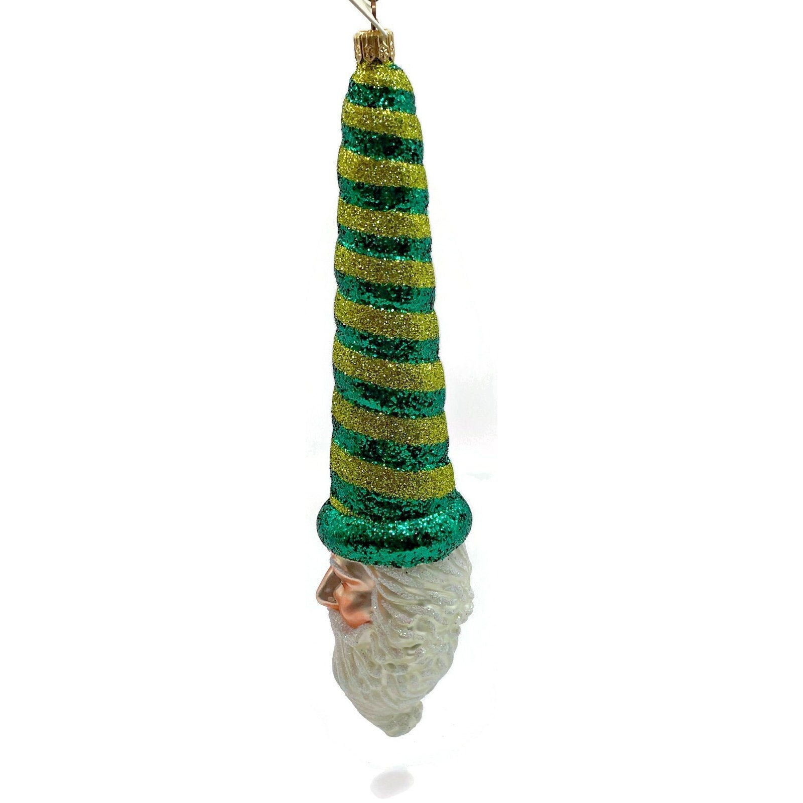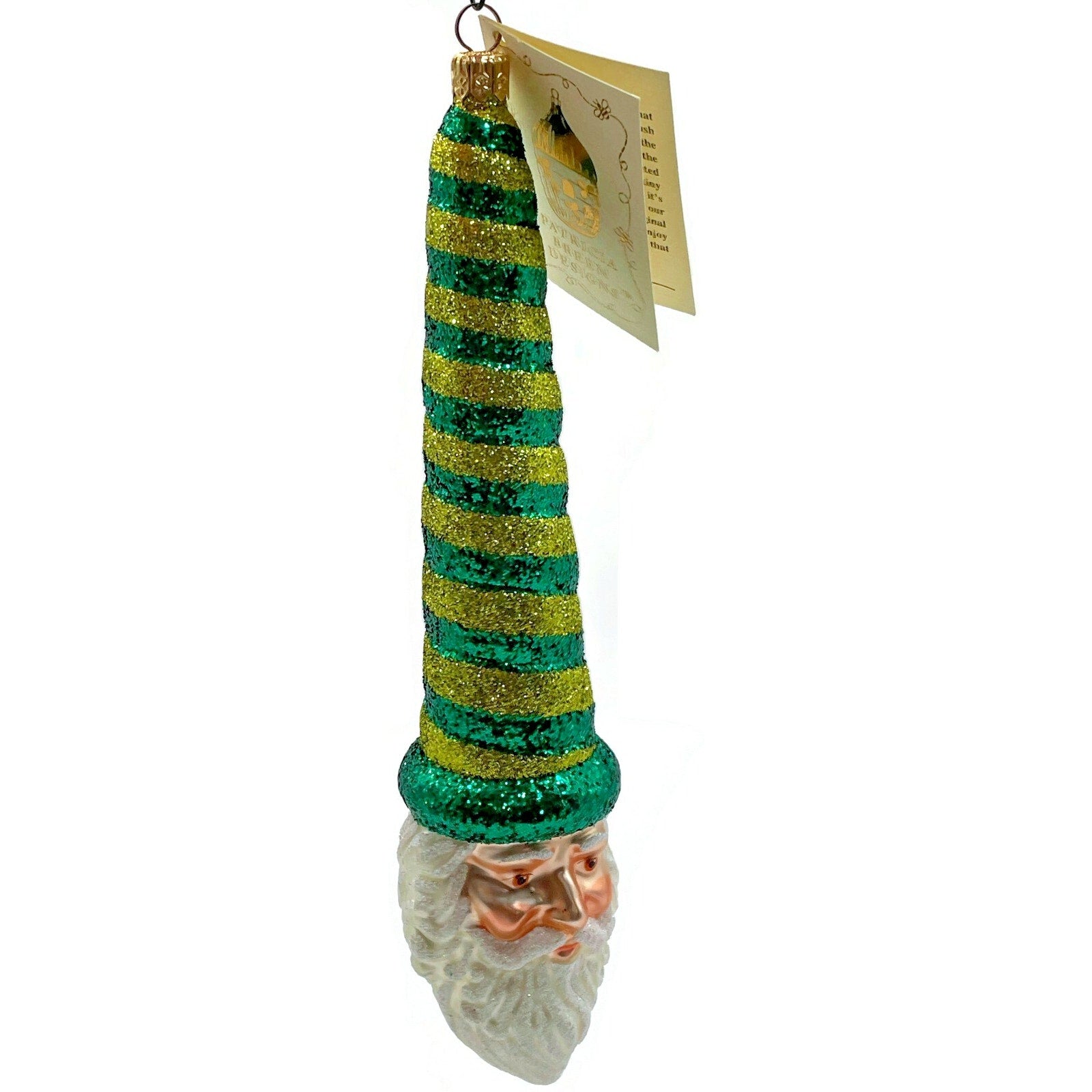 Ornament Patricia Breen Sucre Santa Green Yellow Striped Christmas Holiday Tree Glittered Decoration