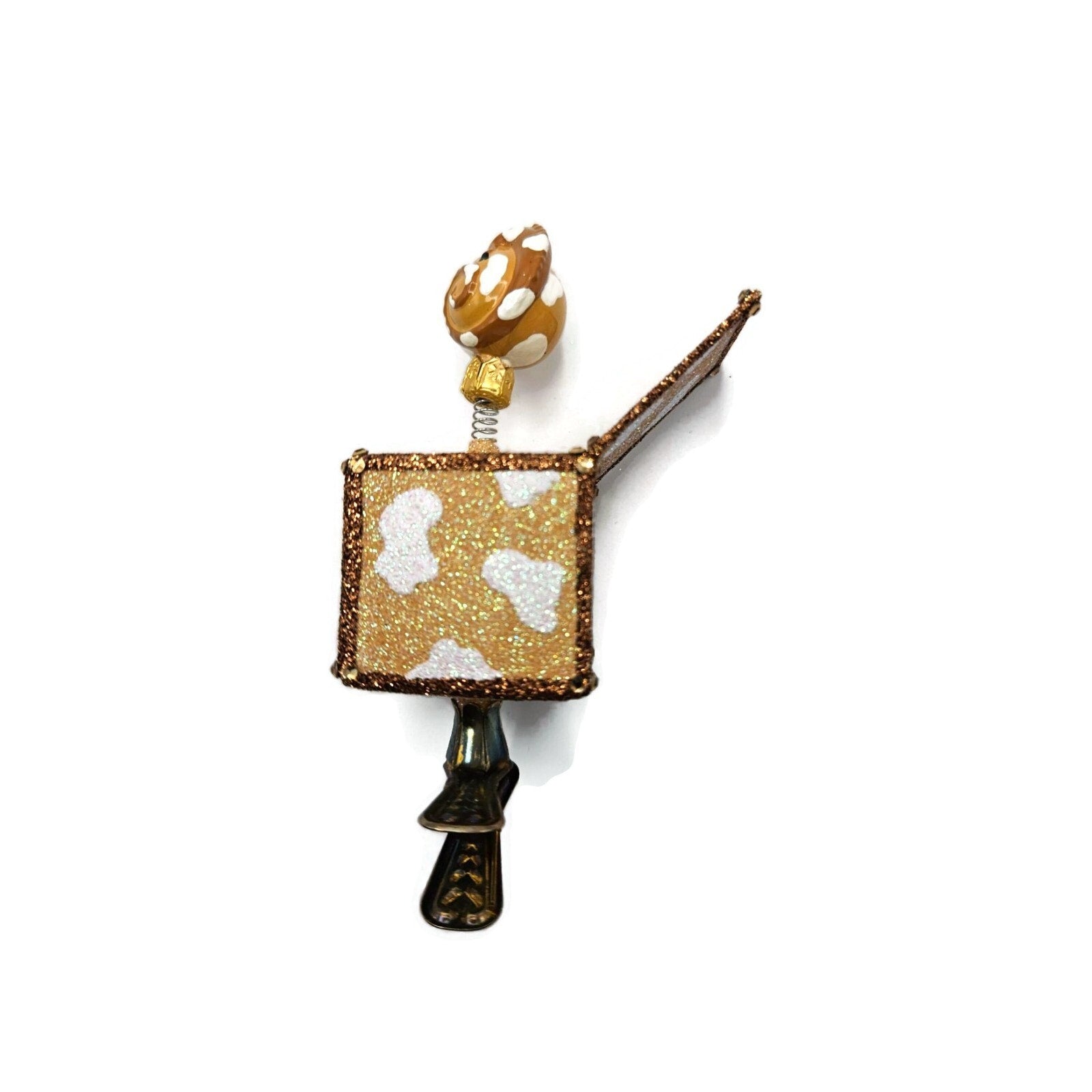Patricia Breen Pop Goes the Chameleon Cow Brown Clip On Christmas Tree Ornament
