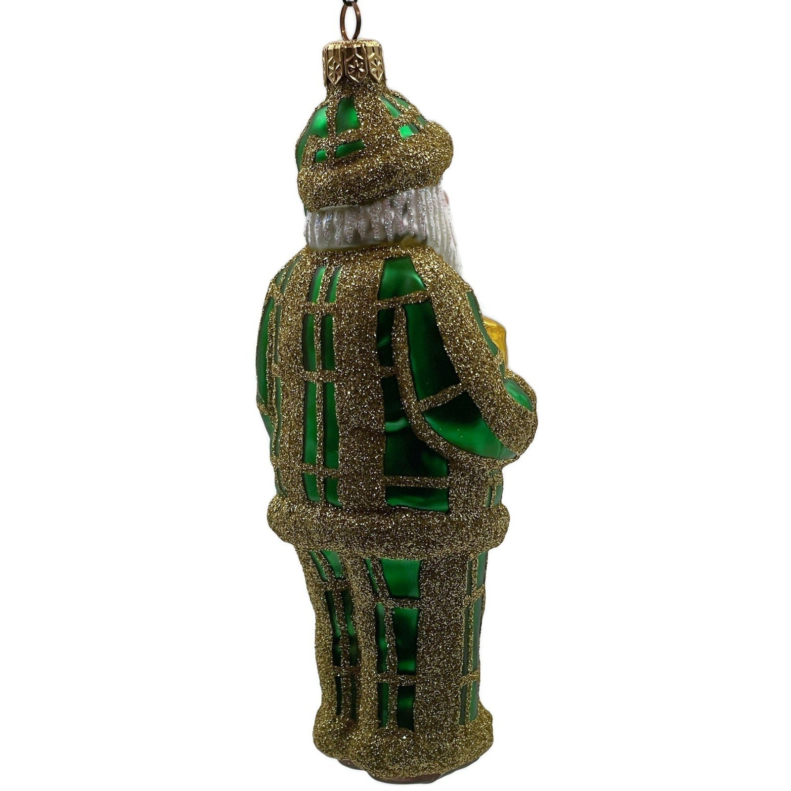 Patricia Breen Ring In The New Santa Claus Green Plaid Gold Christmas Ornament