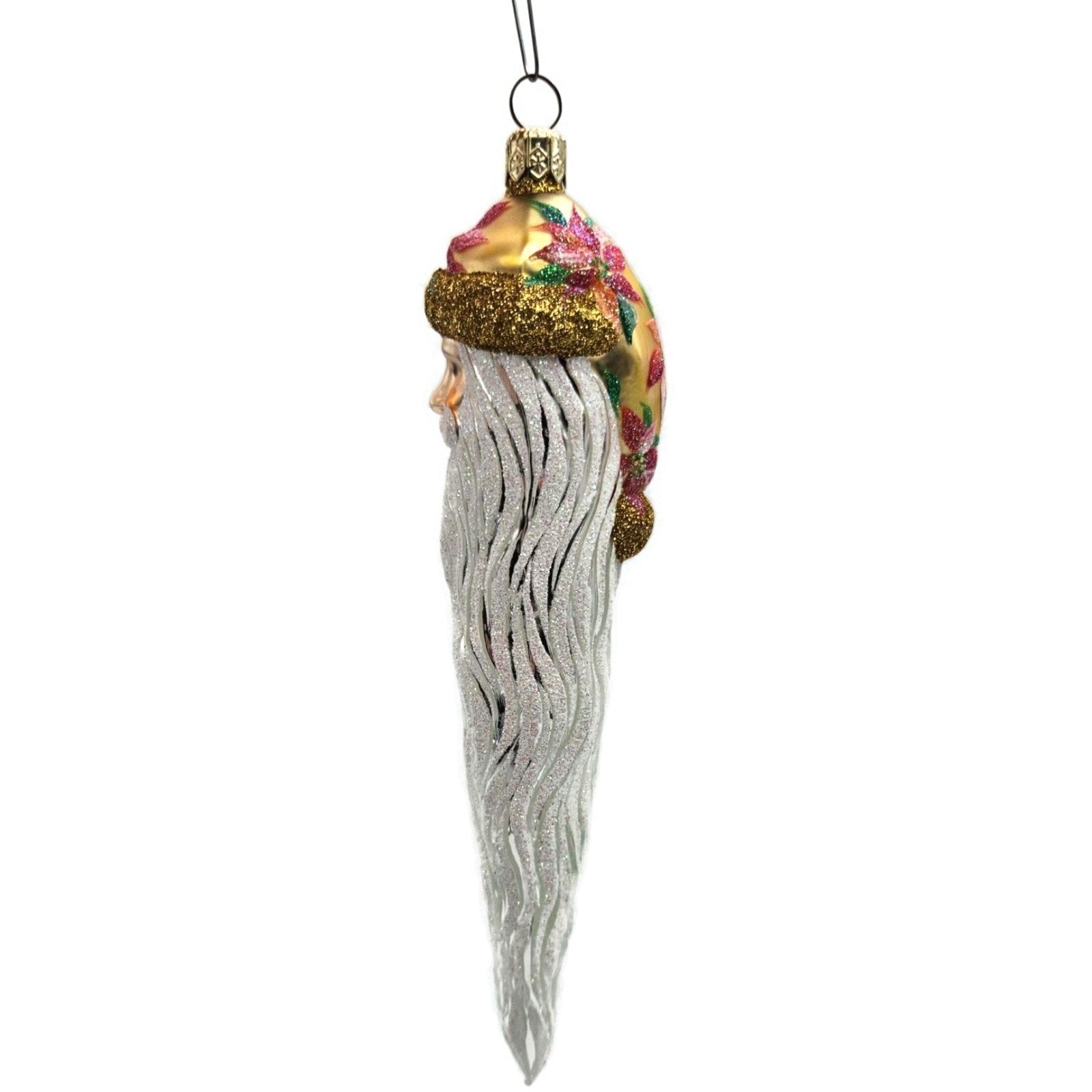 Patricia Breen Santa Icicle Beard Poinsettia Gold Hat Floral Christmas Ornament