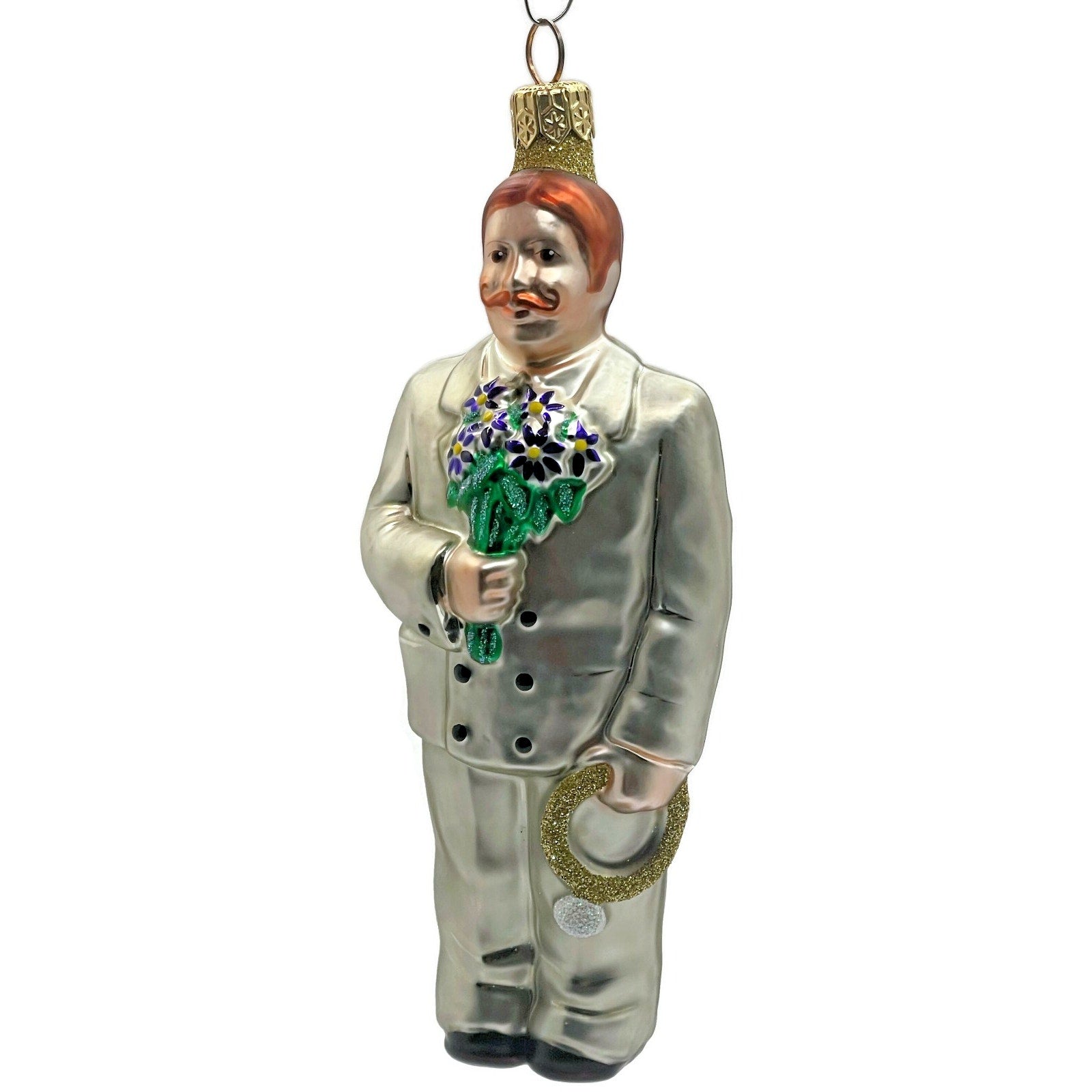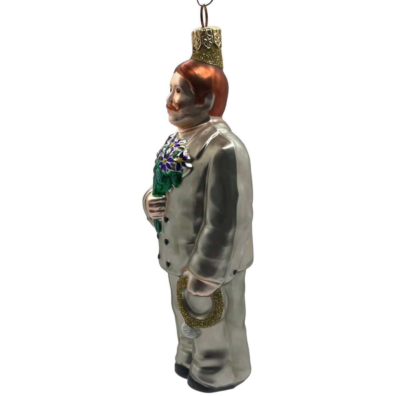 Patricia Breen Ornament Smitten Groom Platinum Blue Flowers Vintage Christmas Tree Decoration