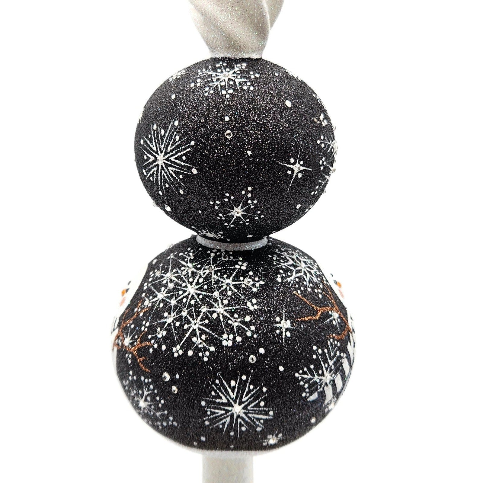 Patricia Breen Snowman Finial Black Glittered Snow Christmas Holiday Tree Topper