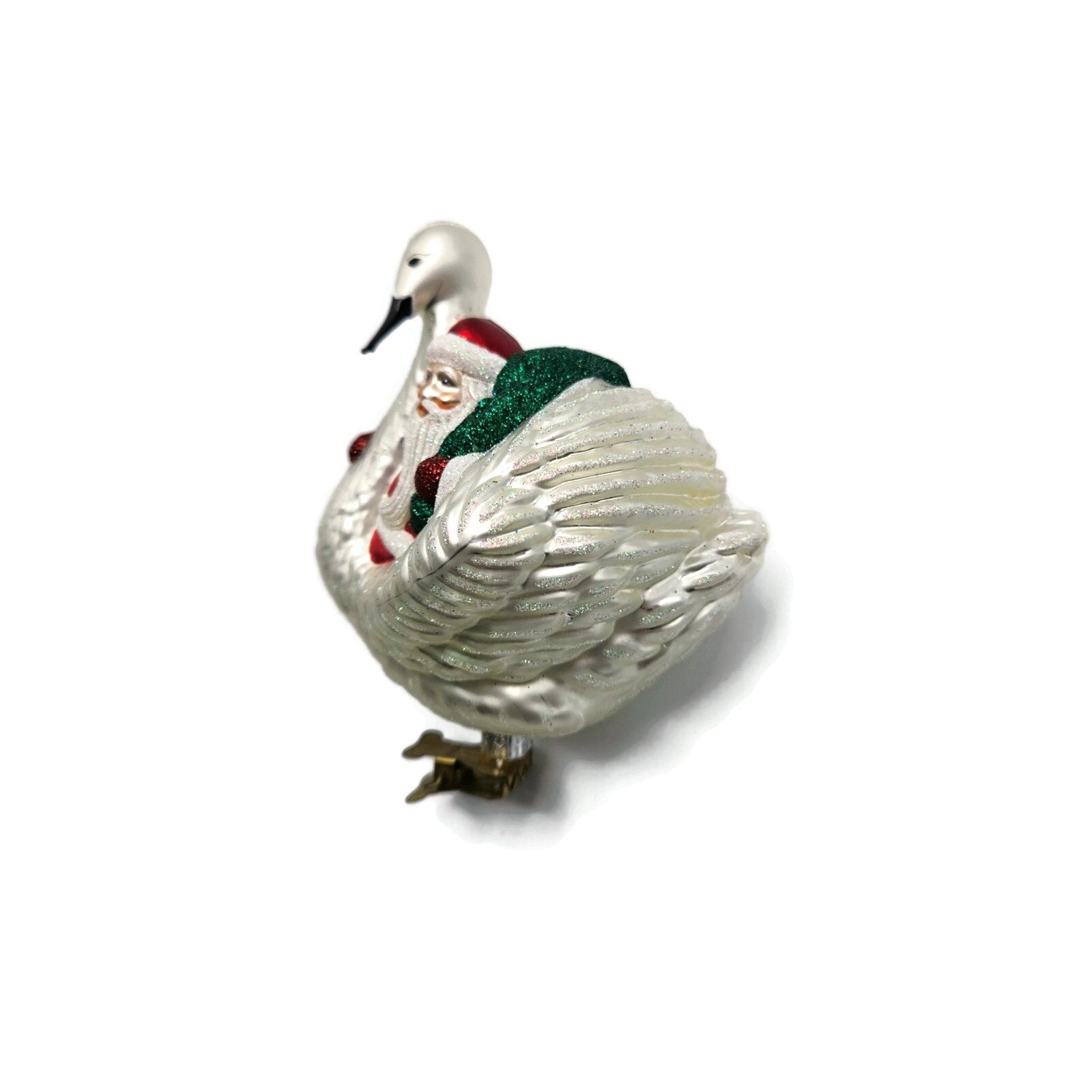 Patricia Breen Swan Boat Santa Claus Red Gold Trim Clip On Christmas Ornament