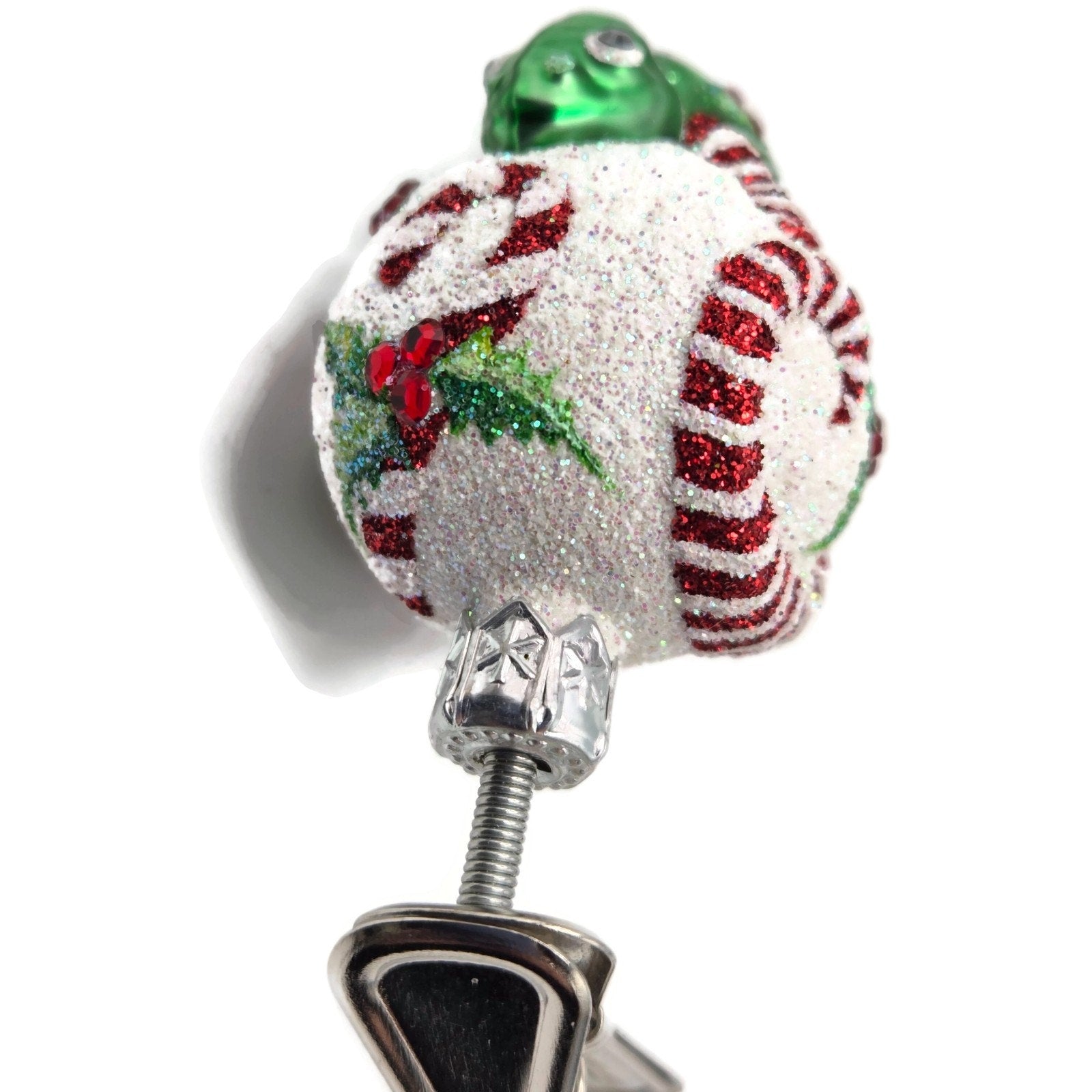 Patricia Breen Ultra Miniature Chameleon Candy Cane and Holly Clip On Christmas Tree Ornament