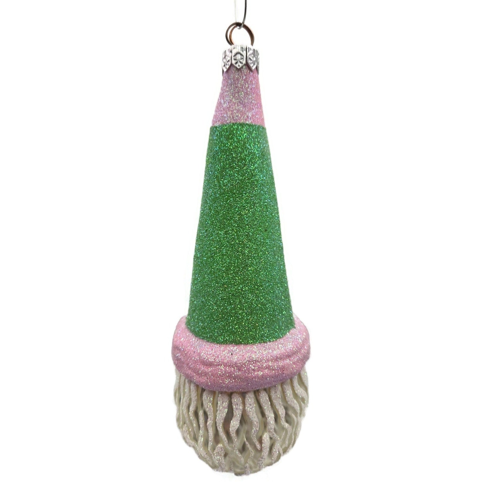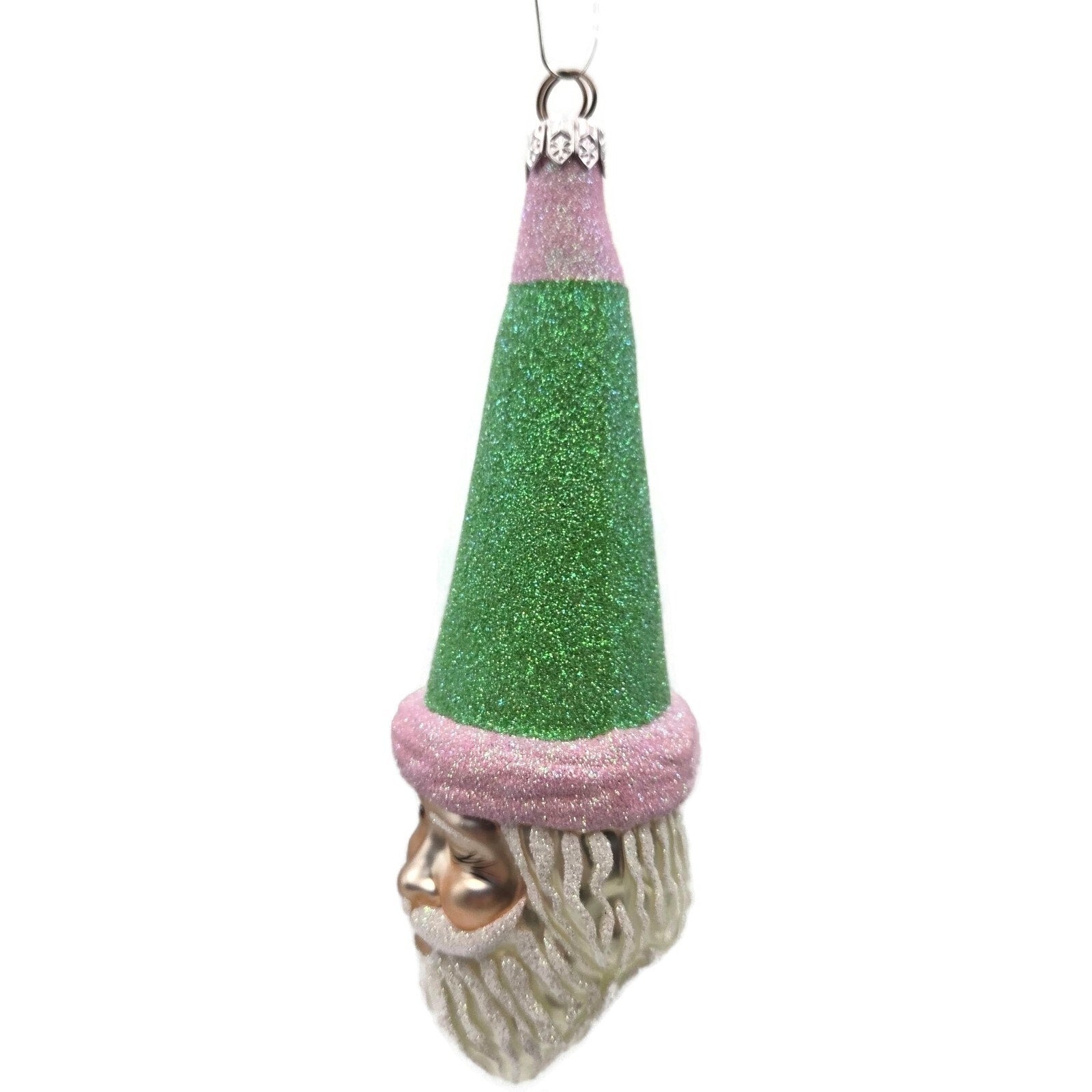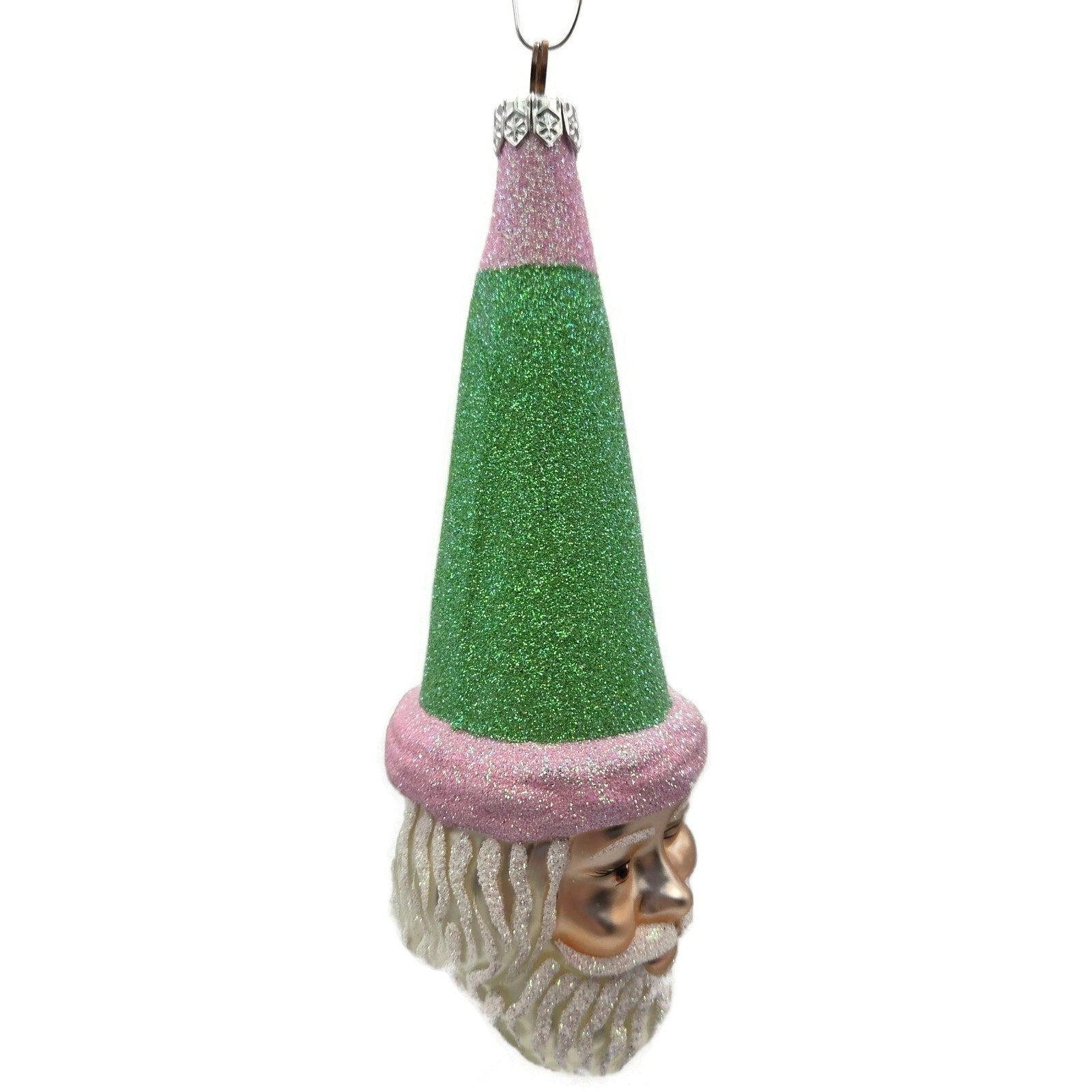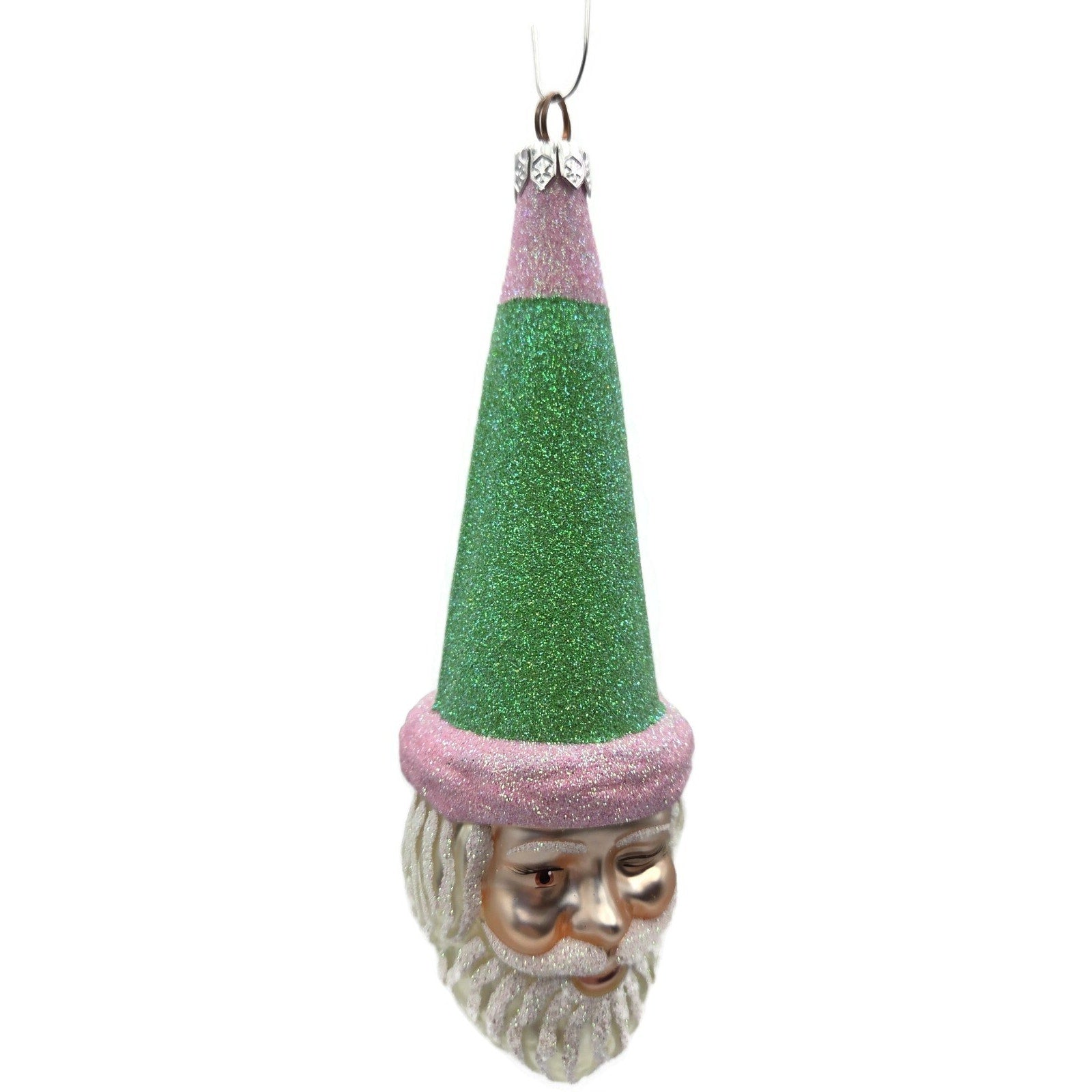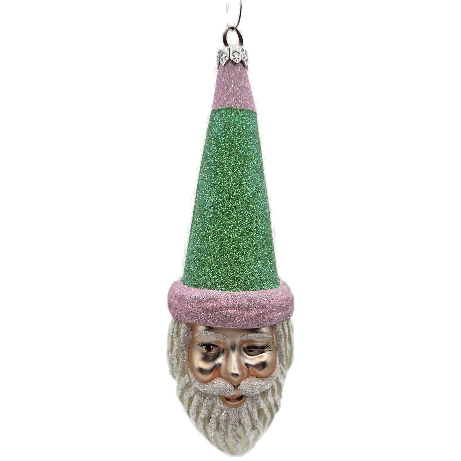 Patricia Breen Wink of His Eye Pink Green Santa Claus Head Christmas Ornament