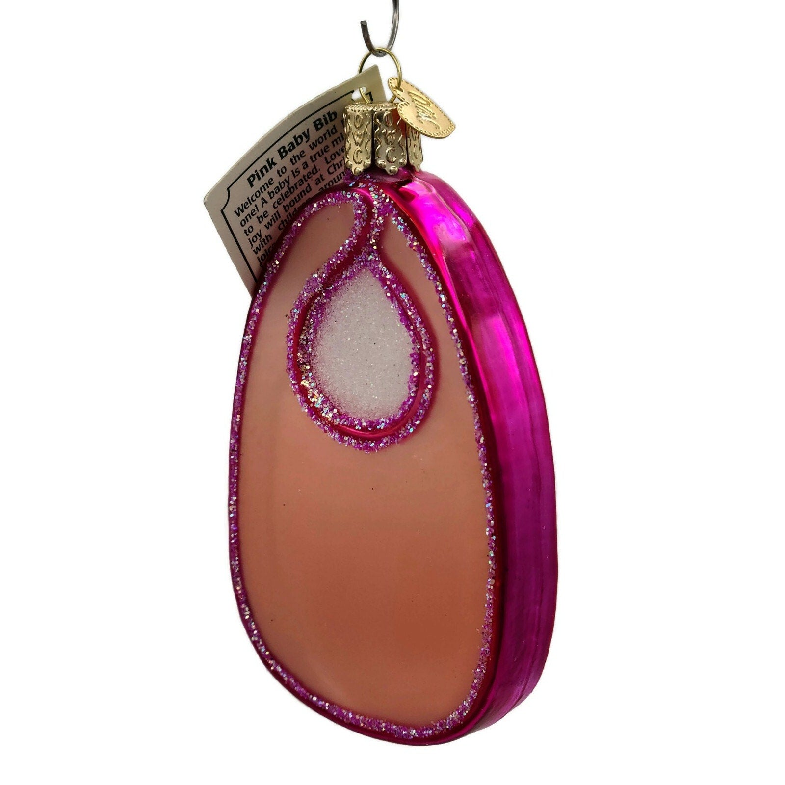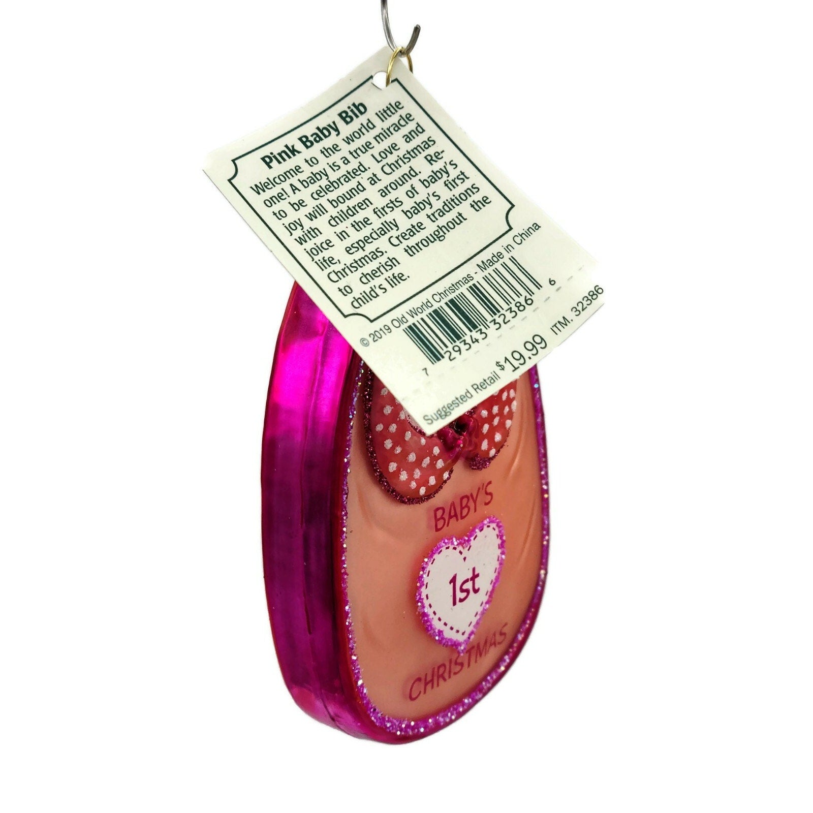 Pink Baby Bib Girl Babys First Christmas Holiday Dinner Old World Christmas OWC