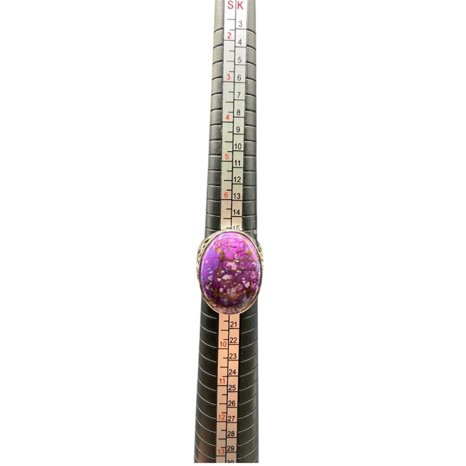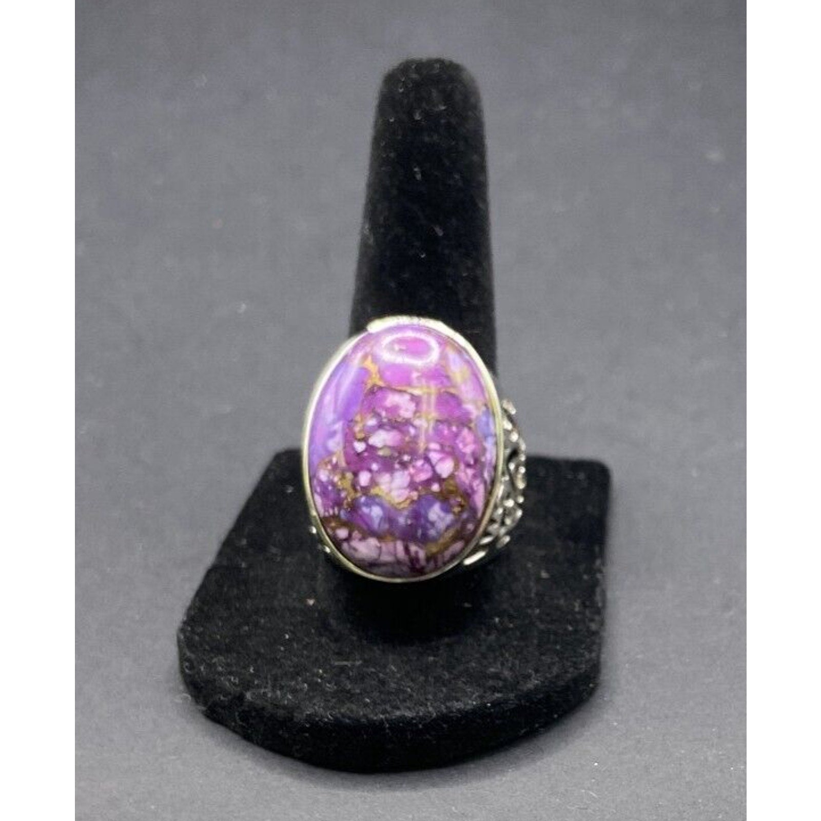 925 Sterling Silver Ring Purple Turquoise Gemstone Oval Cabochon Filigree Size 8
