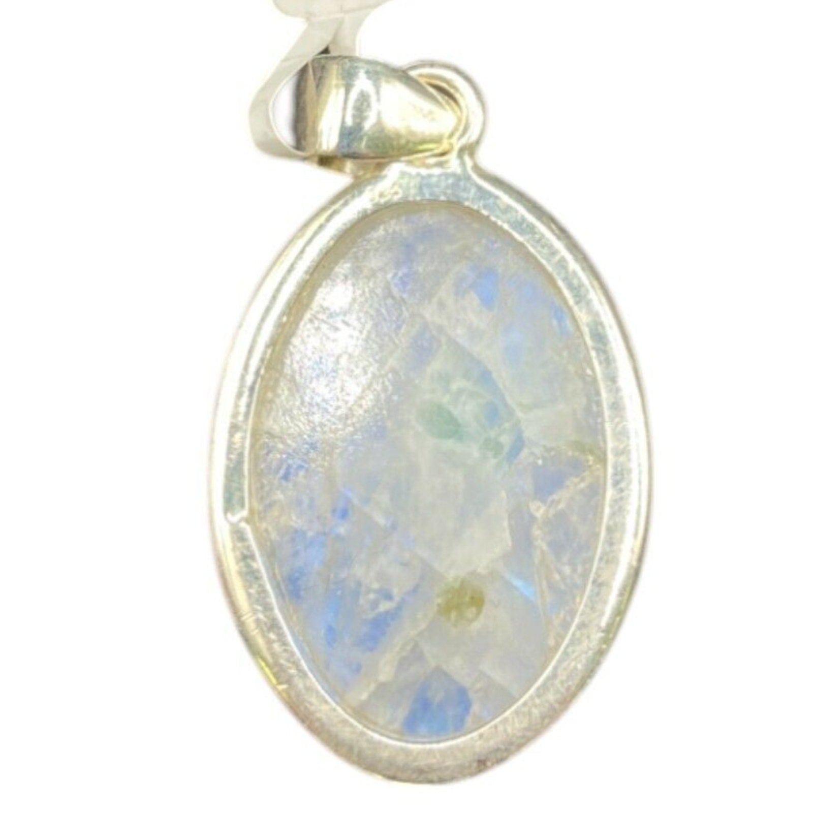 Rainbow Moonstone Pendant Oval Polished Crystal Gemstone Sterling Silver