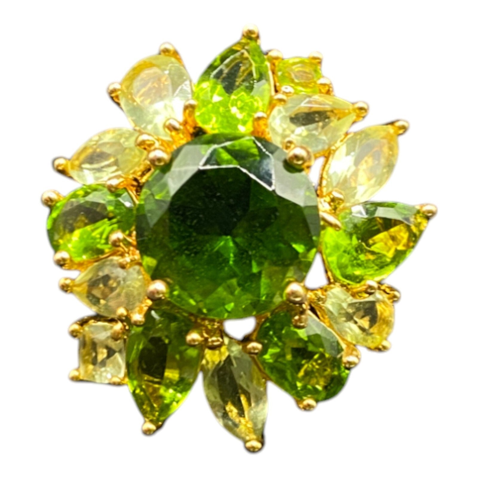 Ross Simons 925 Sterling Silver Gold Plated Green Peridot Flower Ring Size 8