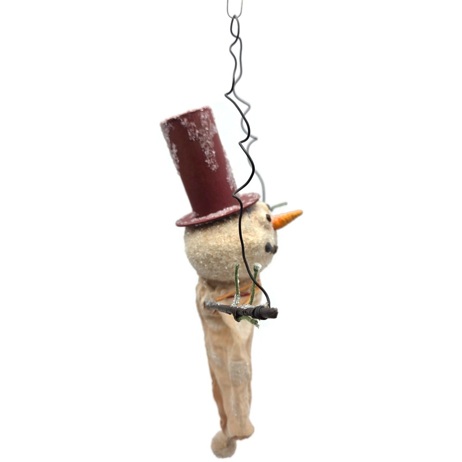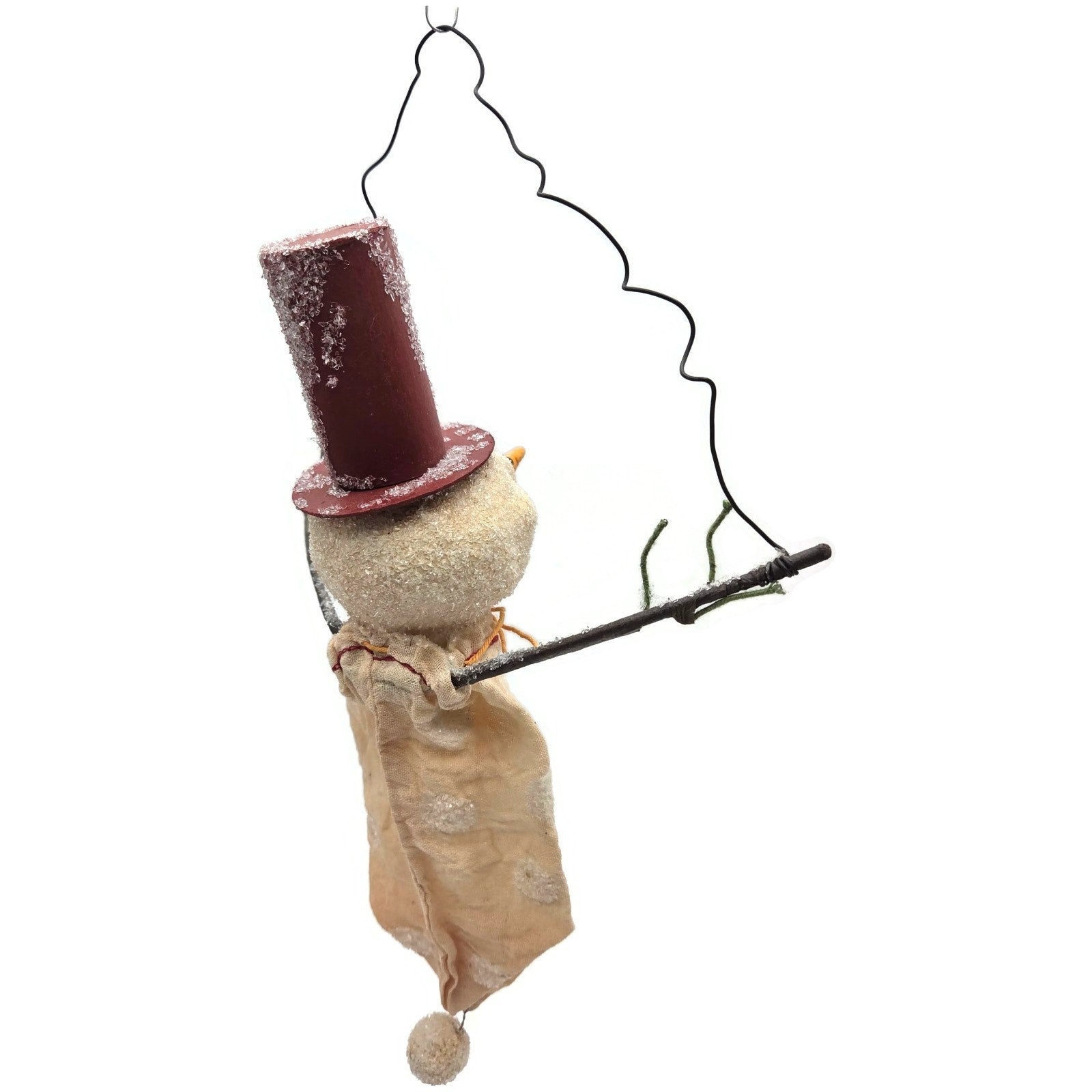 This rare, signed 2001 Rucus Studios snowman ornament by Scott Smith is a true piece of collectible folk art. Scott Smith, the artist behind Rucus Studios, is renowned for his imaginative, whimsical creations, and this early work beautifully captures his signature style.