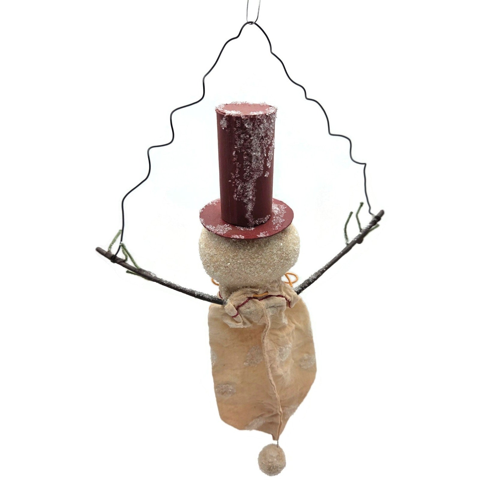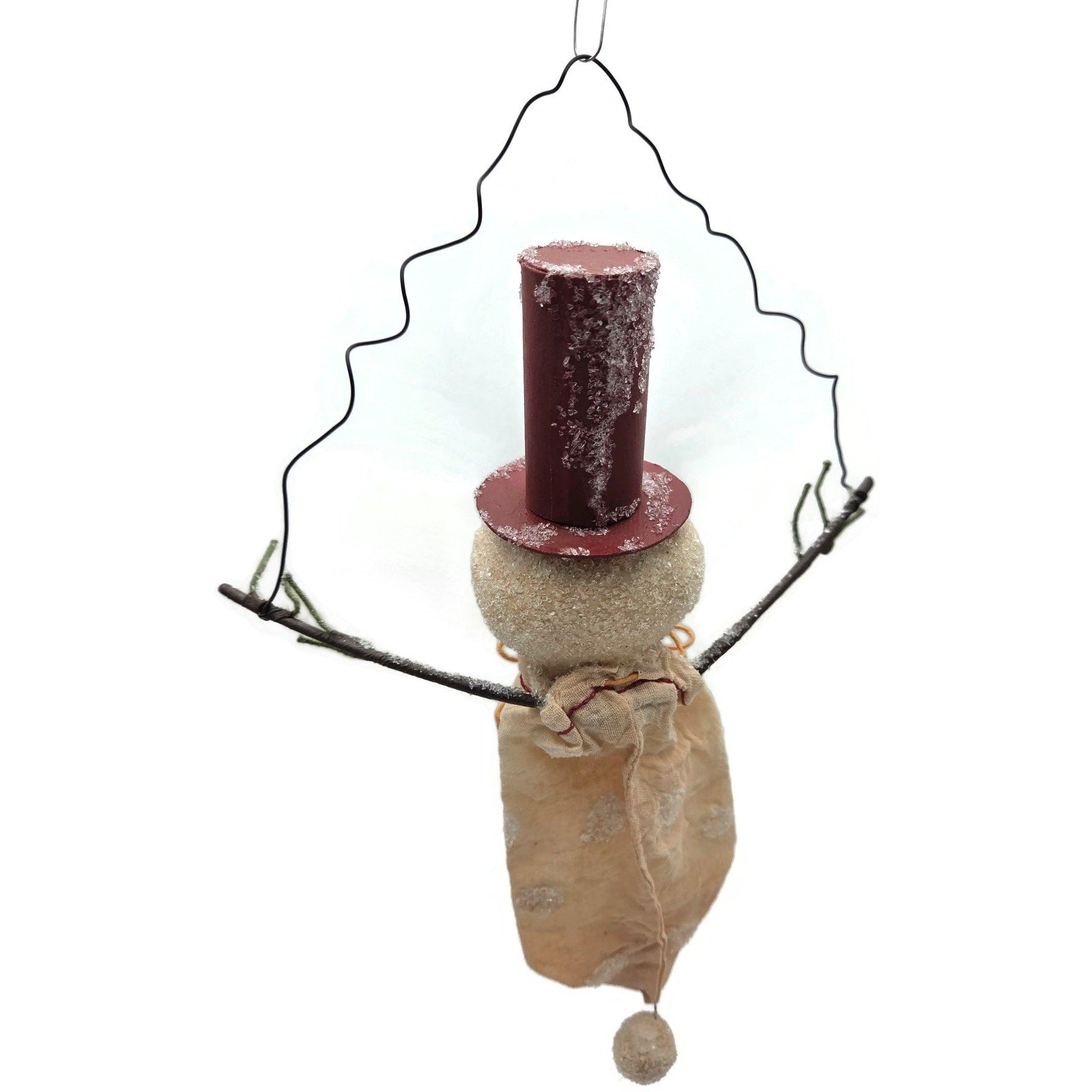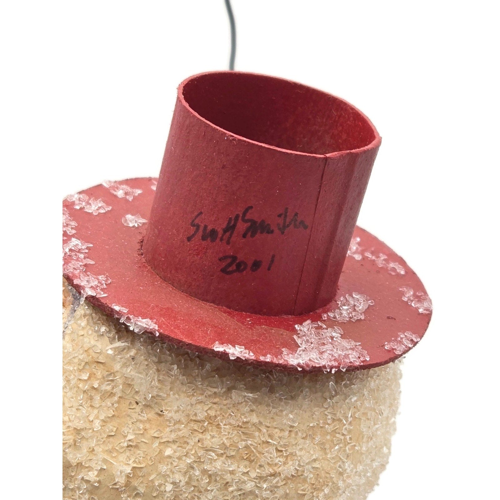 Rucus Studios Scott Smith Snowman Ornament 2001 Handmade Folk Art wtih Red Hat
