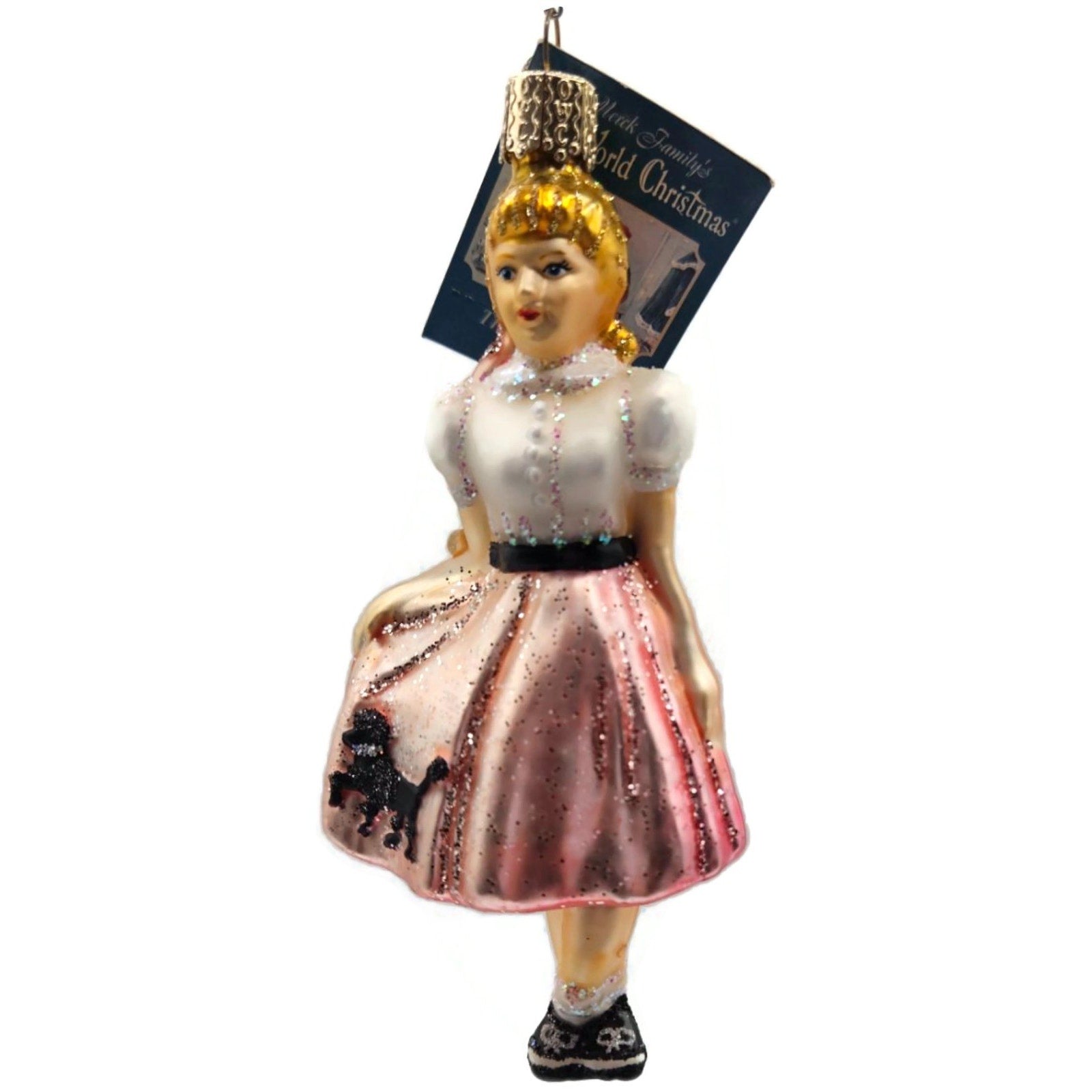 OWC Teeny Bopper Girl Ornament Pink Blown Glass Dance Old World Christmas Holiday Decoration