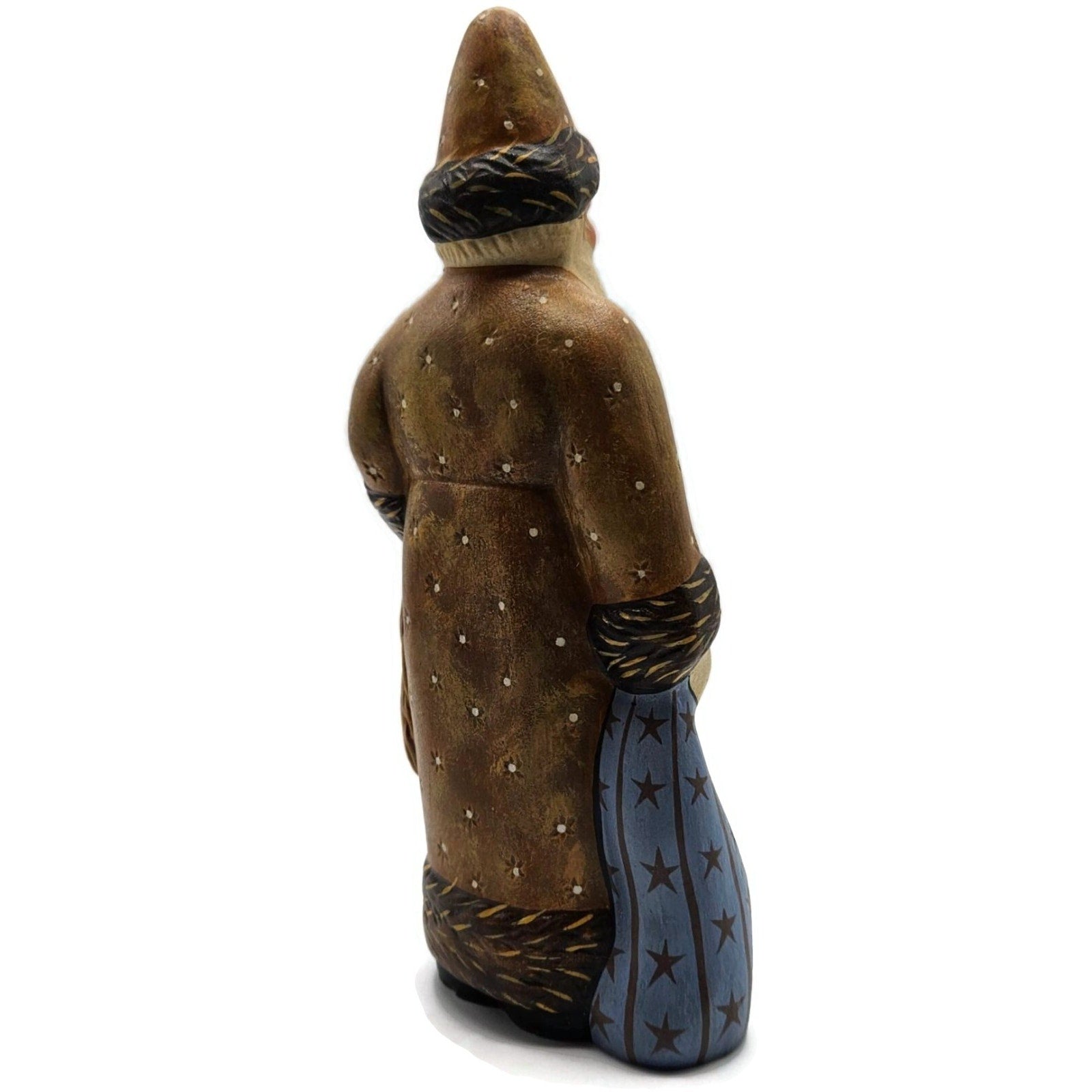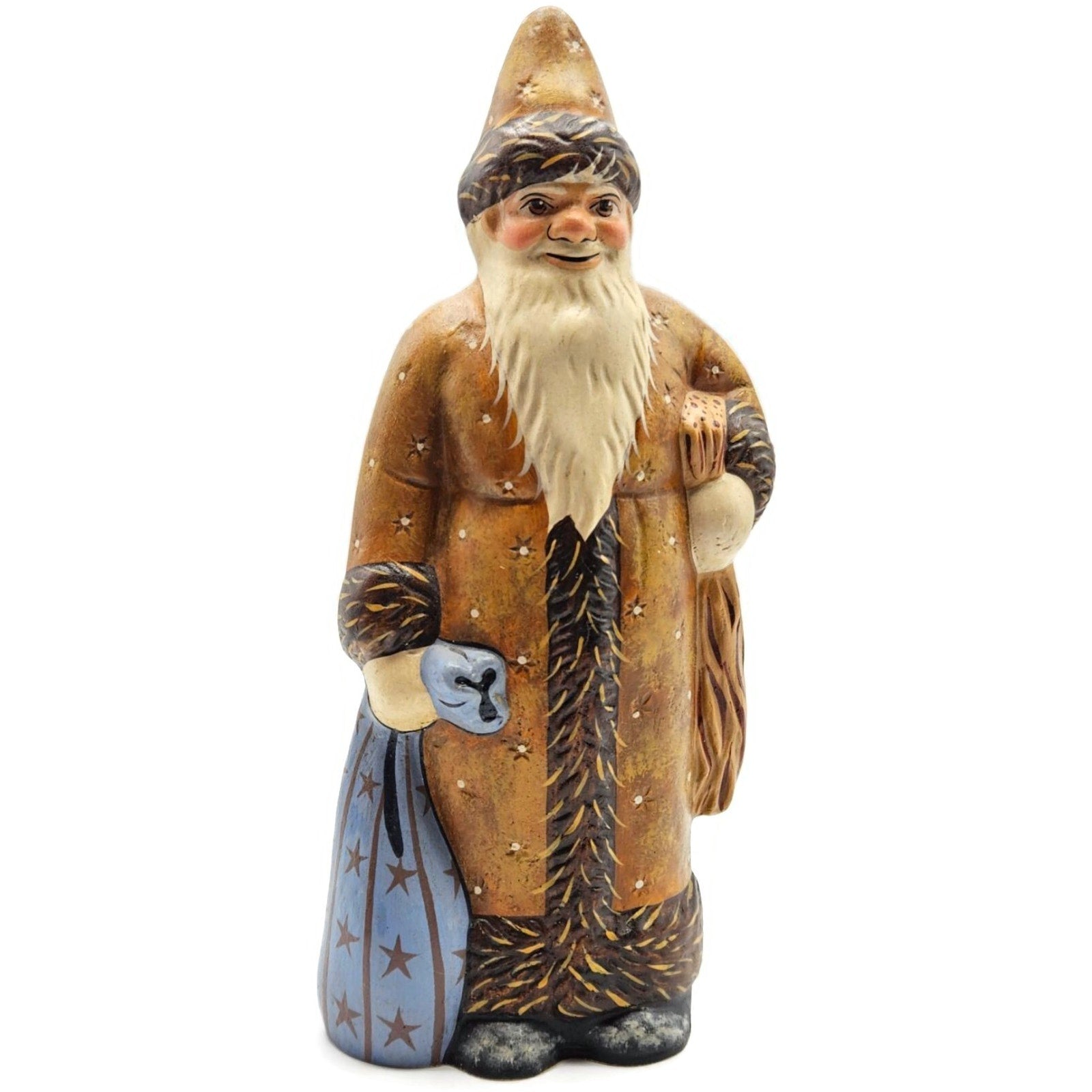 Vaillancourt Brown Father Christmas with Blue Sack Folk Art Chalkware Figurine