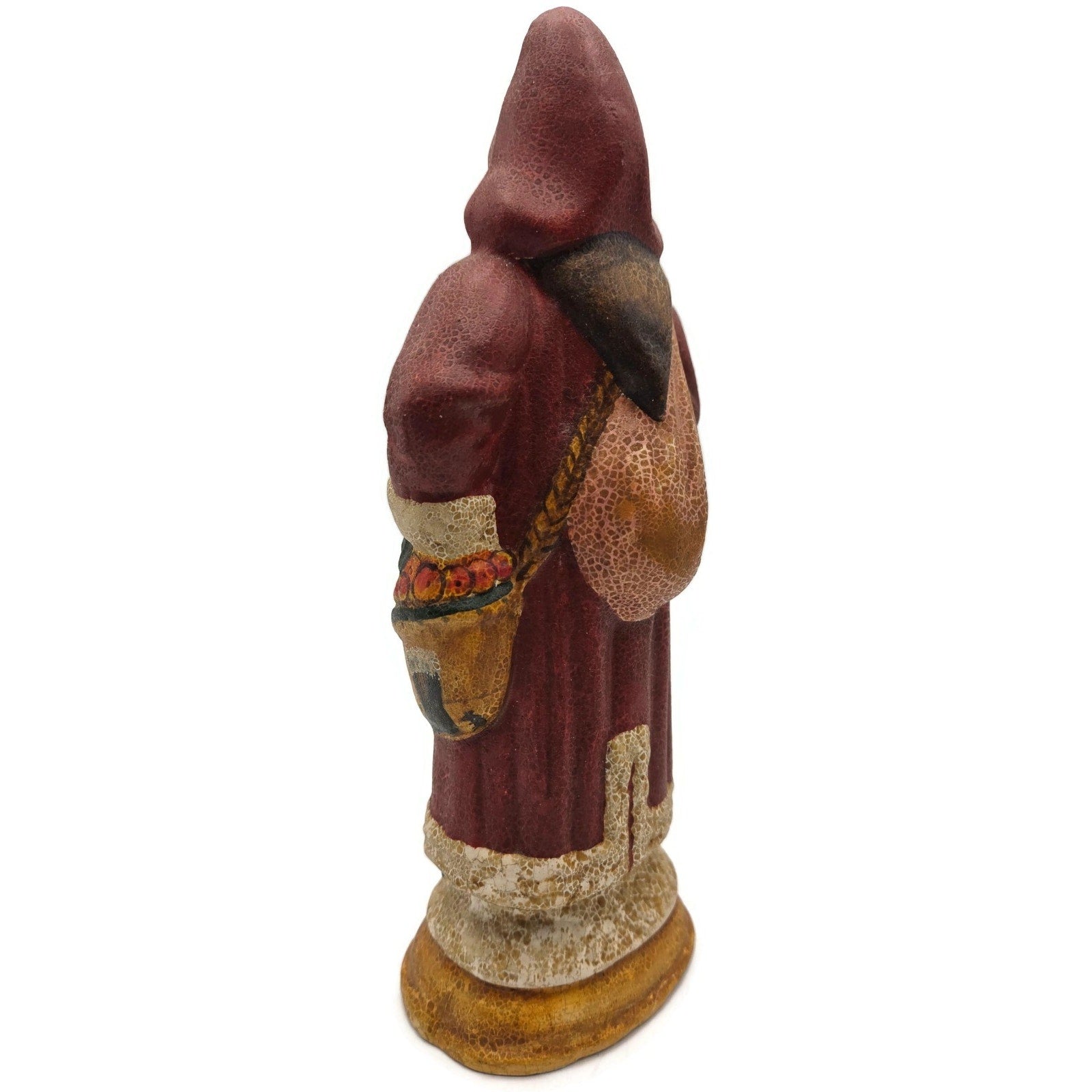 Vaillancourt Chalkware Folk Art Country Home Red Father Christmas With A Sack Of Apples Figurine