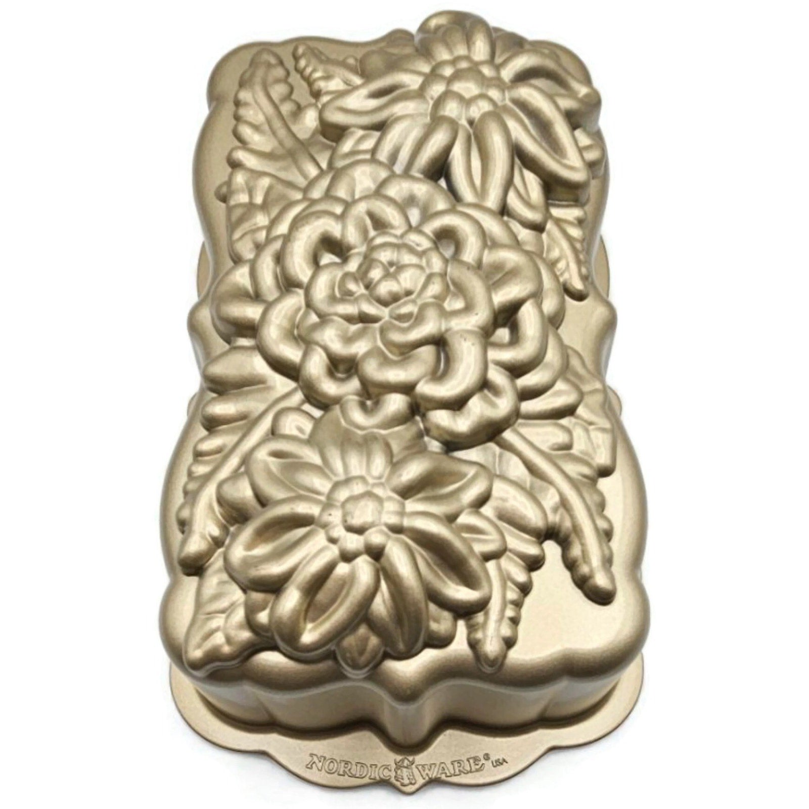 Williams Sonoma Nordic Ware Wildflower Loaf Cake Pan 6 Cup Heavy Cast Gold